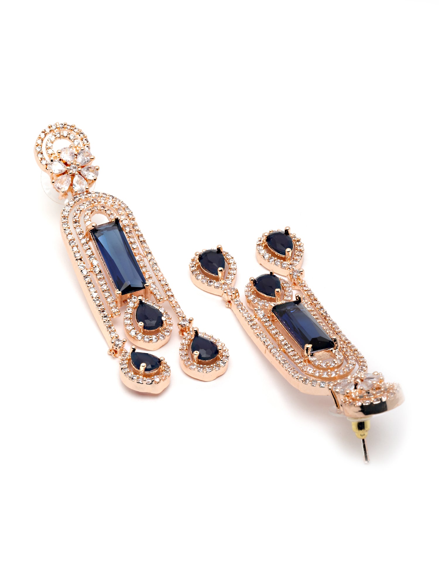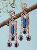Karatcart Rose Gold Plated Blue AD Drop Earrings for Women