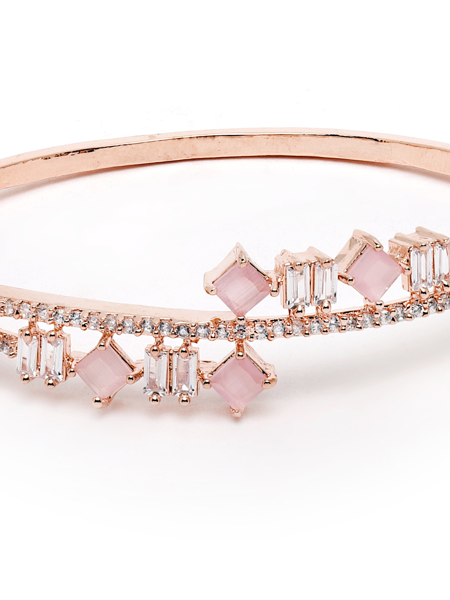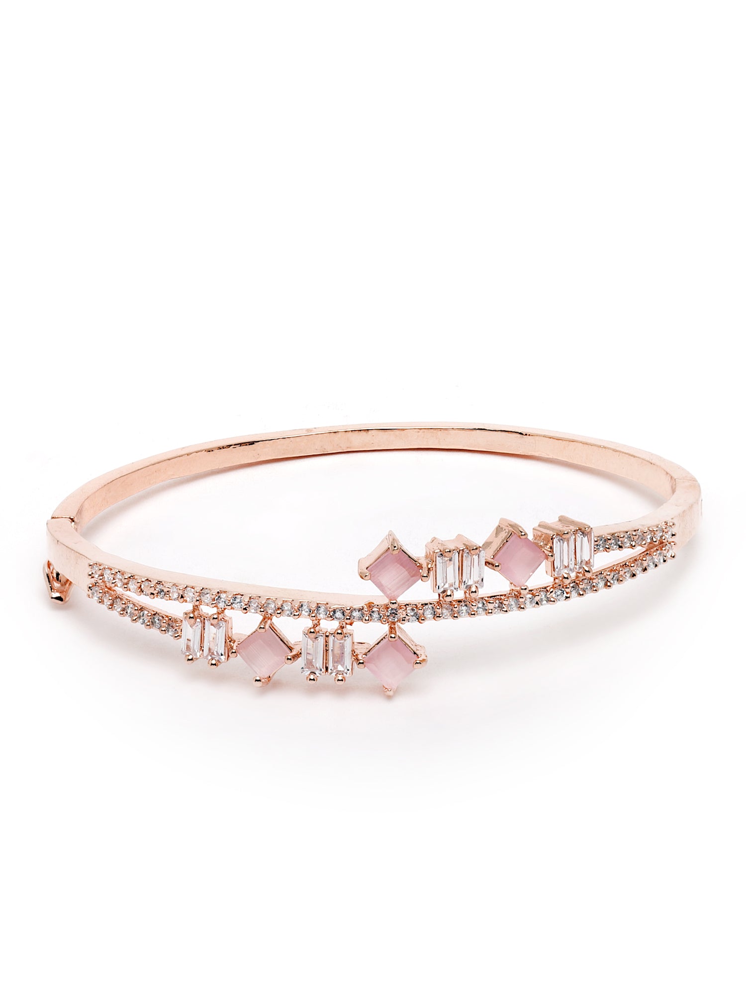 - Rose Gold Plated Pink AD Studded Bracelet for Women. Our products are designed with high-quality material and these products are enhanced with plating that are skin-friendly & with love to reach your heart.