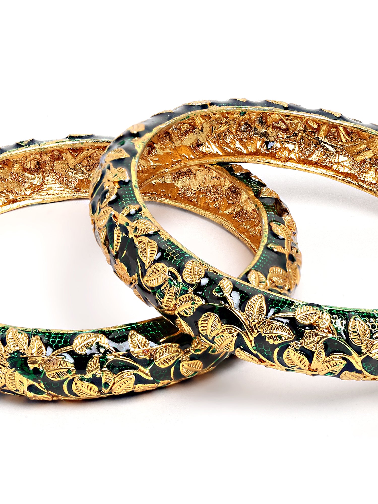 Karatcart Set of 2 Antique Green and Gold Plated Rajwadi Bangles for Women