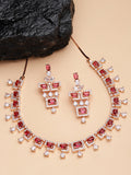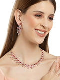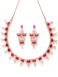 Karatcart Rose Gold Plated Red Cubic Zirconia Studded Necklace Set For Women