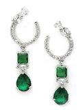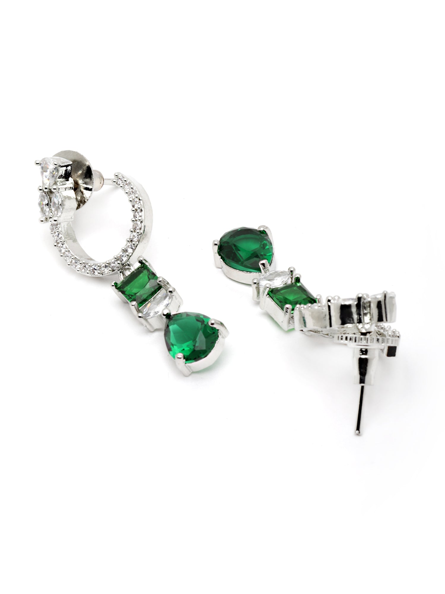 Karatcart Silver Tone Green American Diamond Drop Earrings for Women