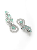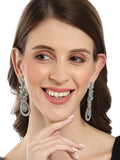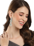 Karatcart Silver Tone Lime Green American Diamond Studded Drop Earrings for Women