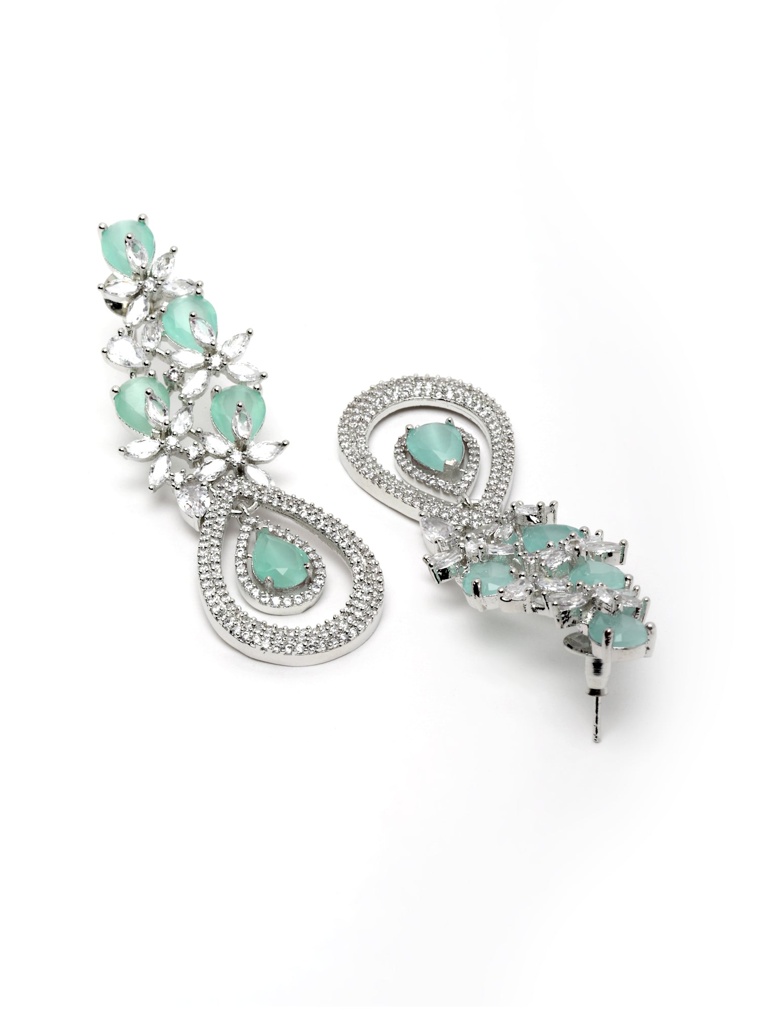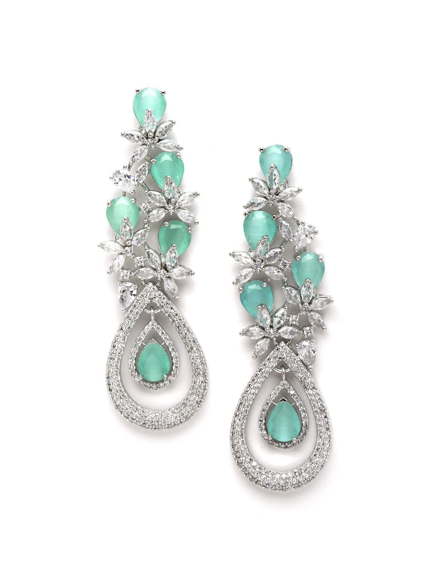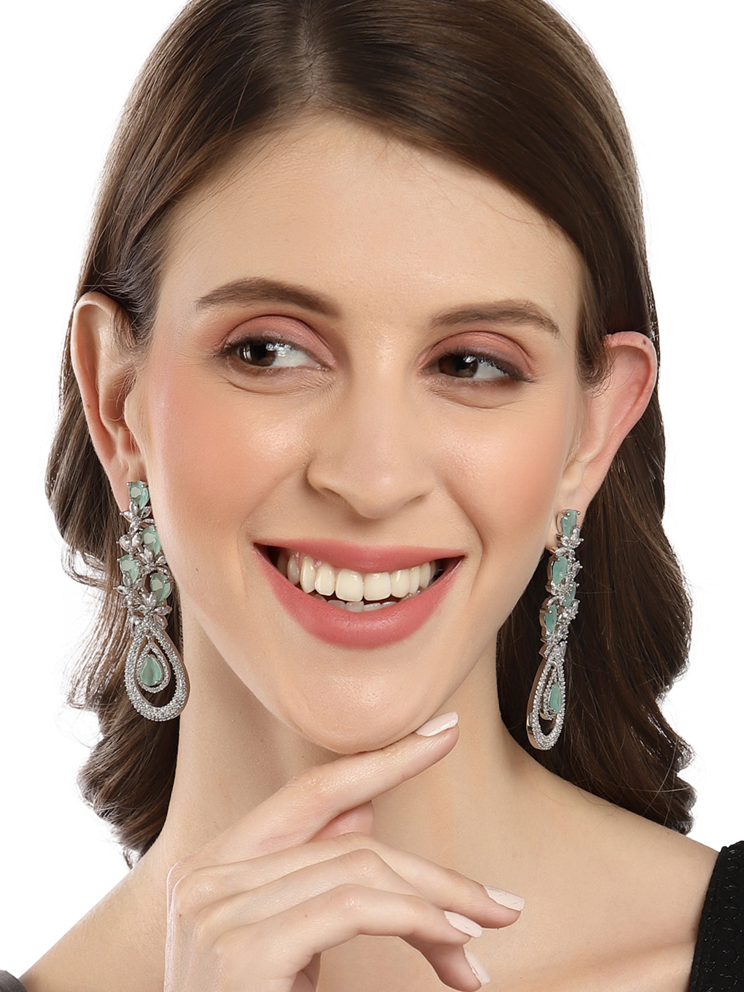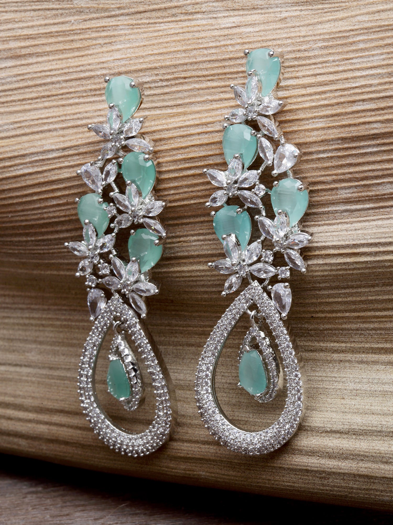 - Silver Tone Lime Green American Diamond Studded Drop Earrings for Women. It is made with high-quality Kundan Stones which makes them very skin-friendly. Perfect for Weddings, Parties, Festivals, and Traditional Occasions. Gracefully pair Saree, Kurti, or any Indo-western outfit to enhance your look. These are made from toxic-free materials which are Anti-Allergic and Safe for the skin.