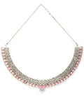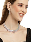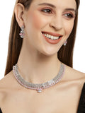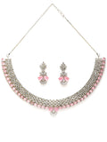 Karatcart Silver Tone Pink AD Necklace Set for Women