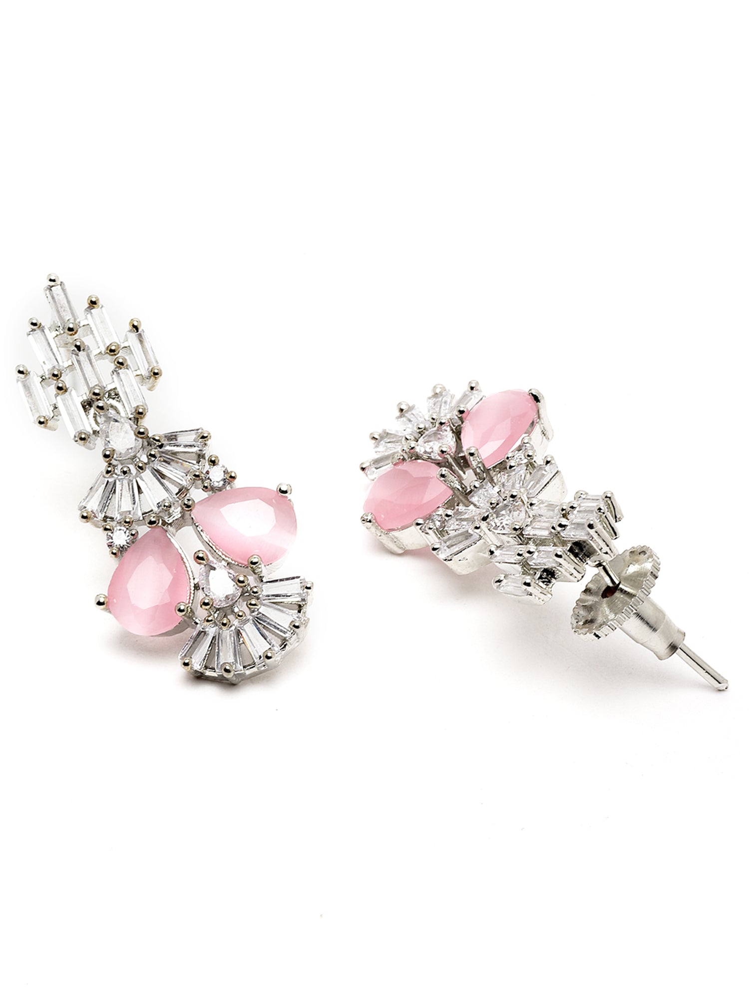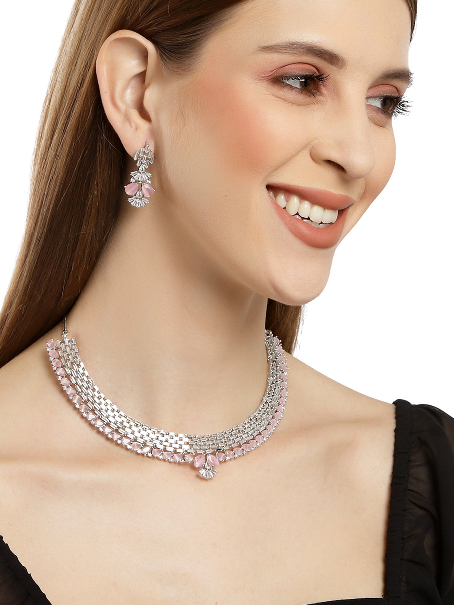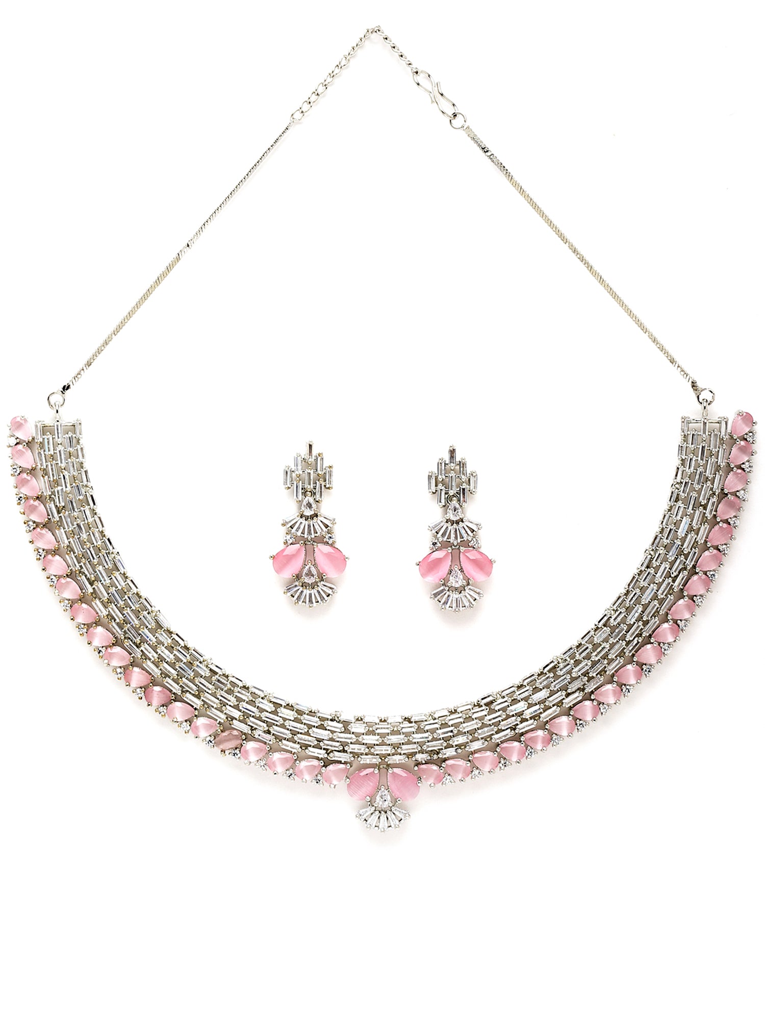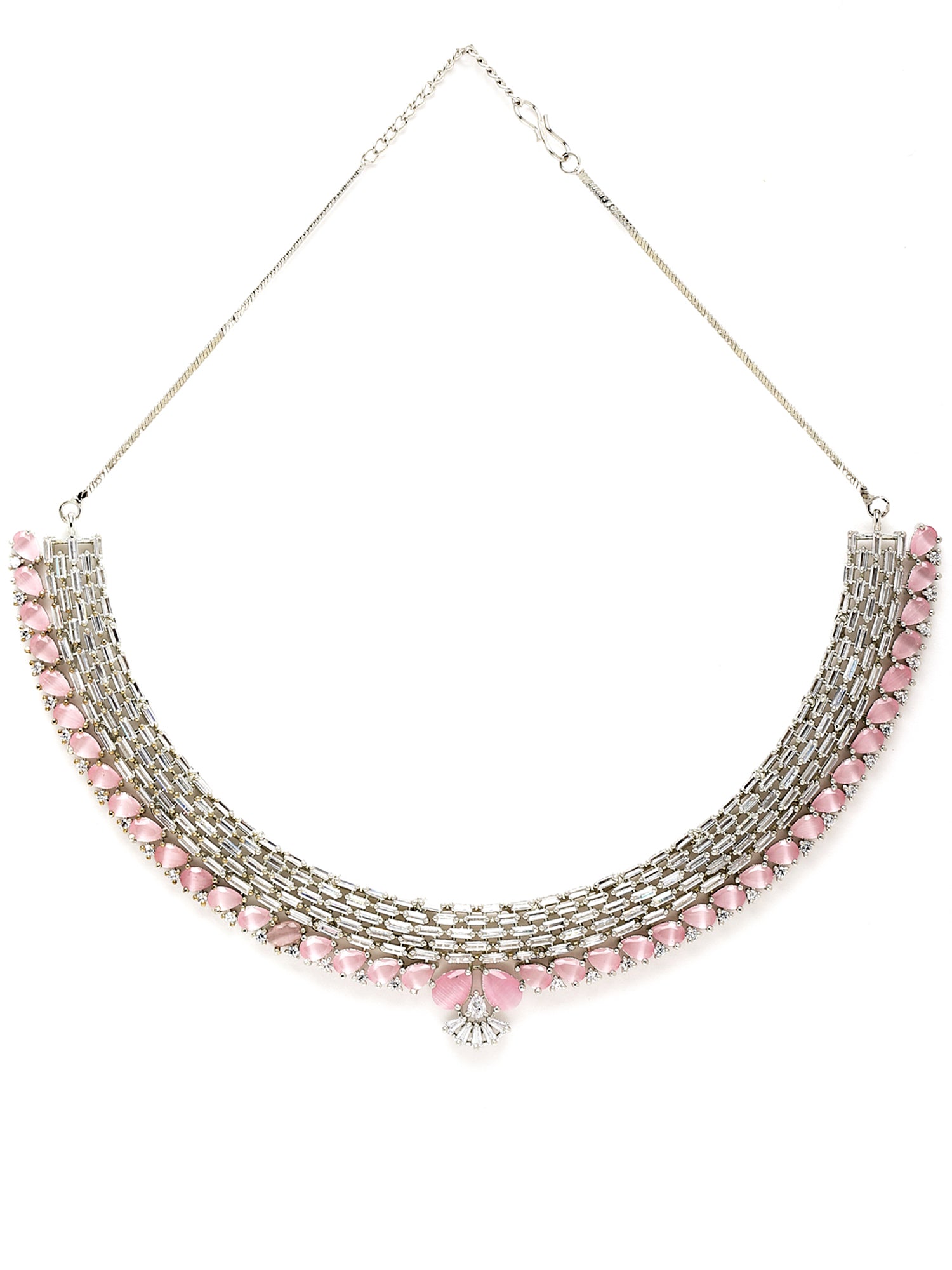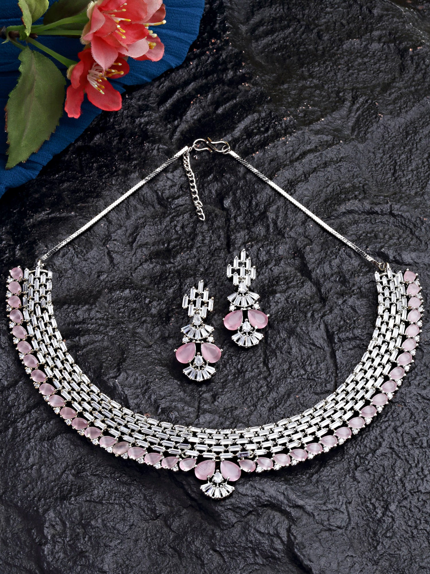 - Silver Tone Pink AD Necklace Set for Women. It is made with High-Quality AAA Cubic zirconia. Perfect for Weddings, Parties, Festivals, and Traditional Occasions.