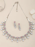 Karatcart Silver Tone Pink Cubic Zirconia Studded Leaf Shape Necklace Set For Women