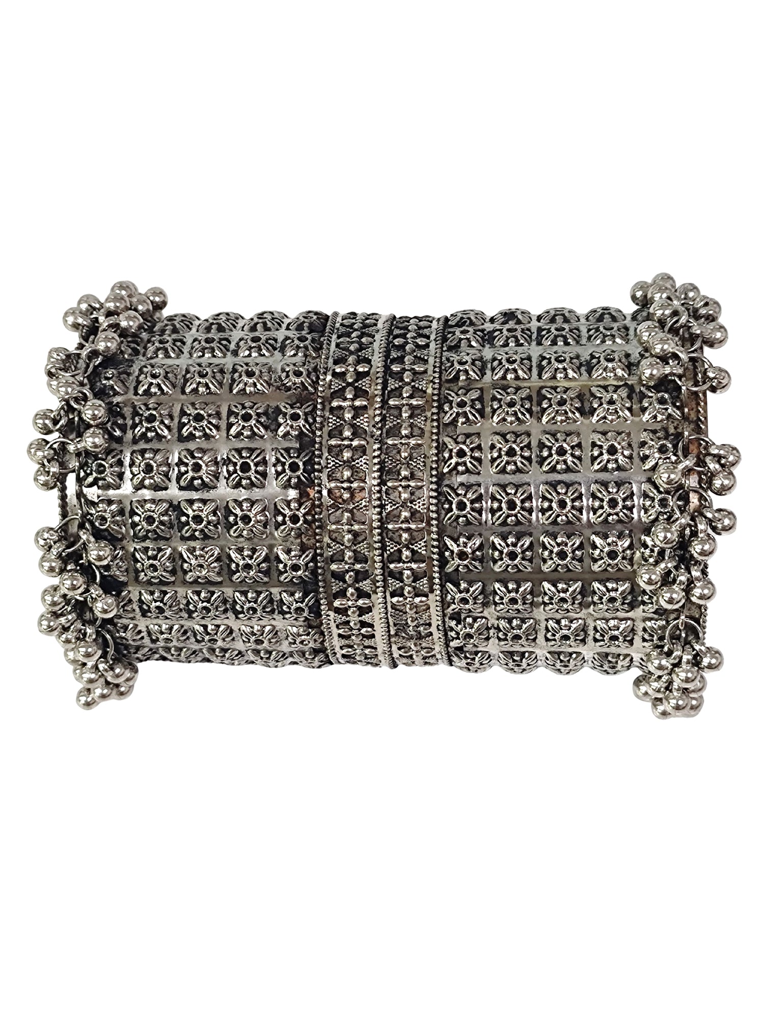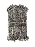 KARATCART Tribal-Inspired Oxidized Silver-Plated Handcrafted Cuff Bangle for Women