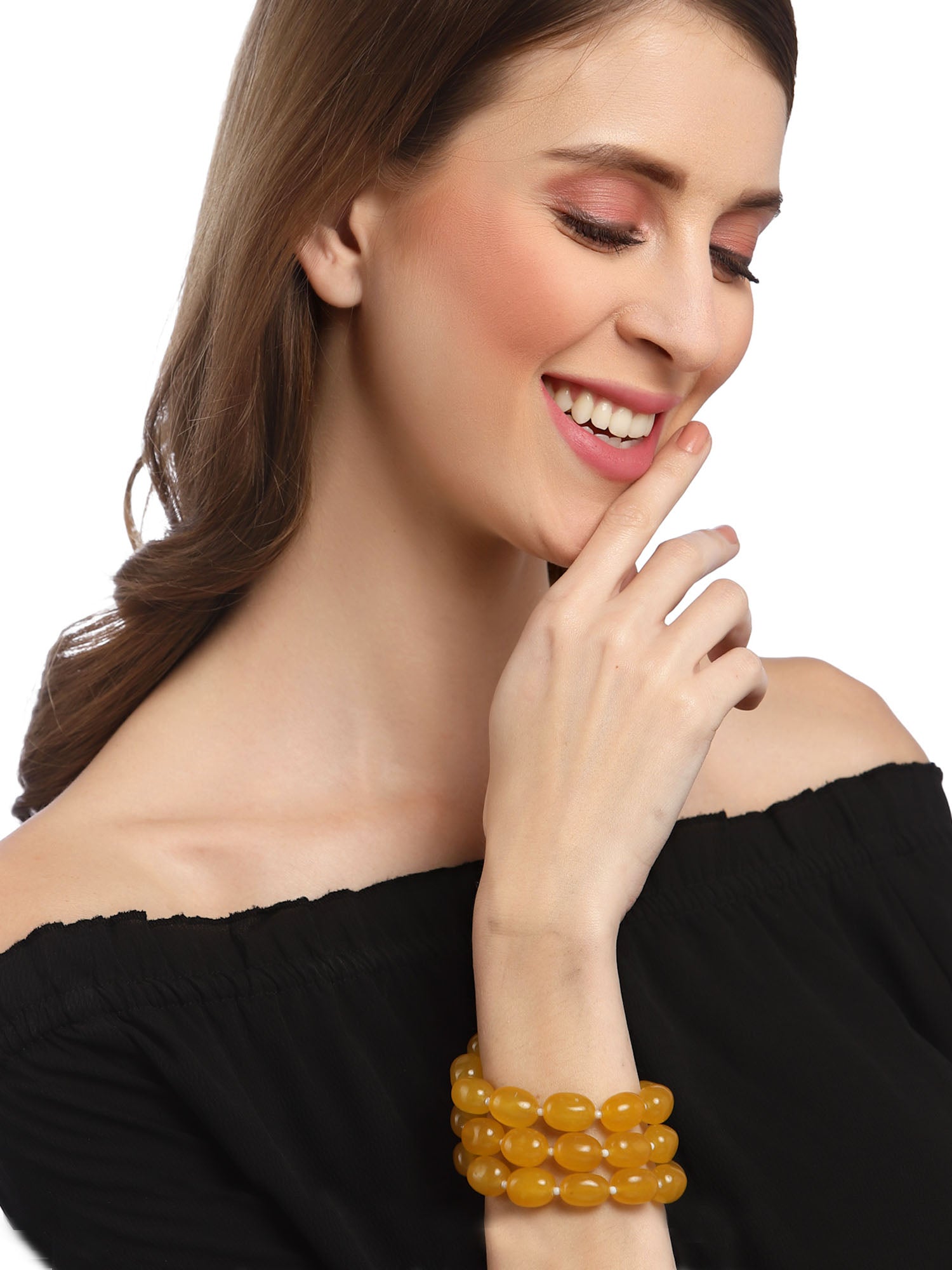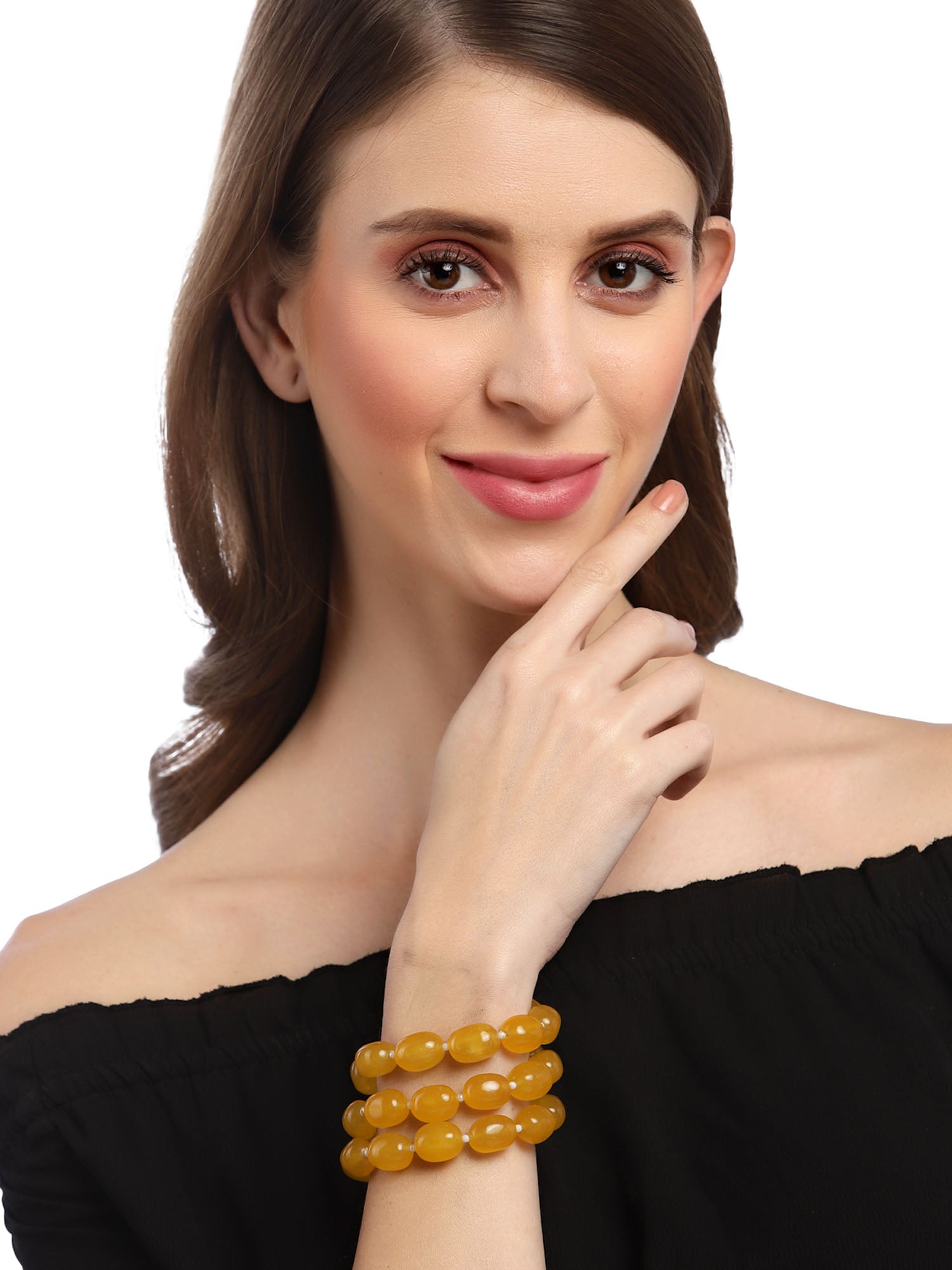 Karatcart Yellow Tumble Stone Beaded Bracelet for Women