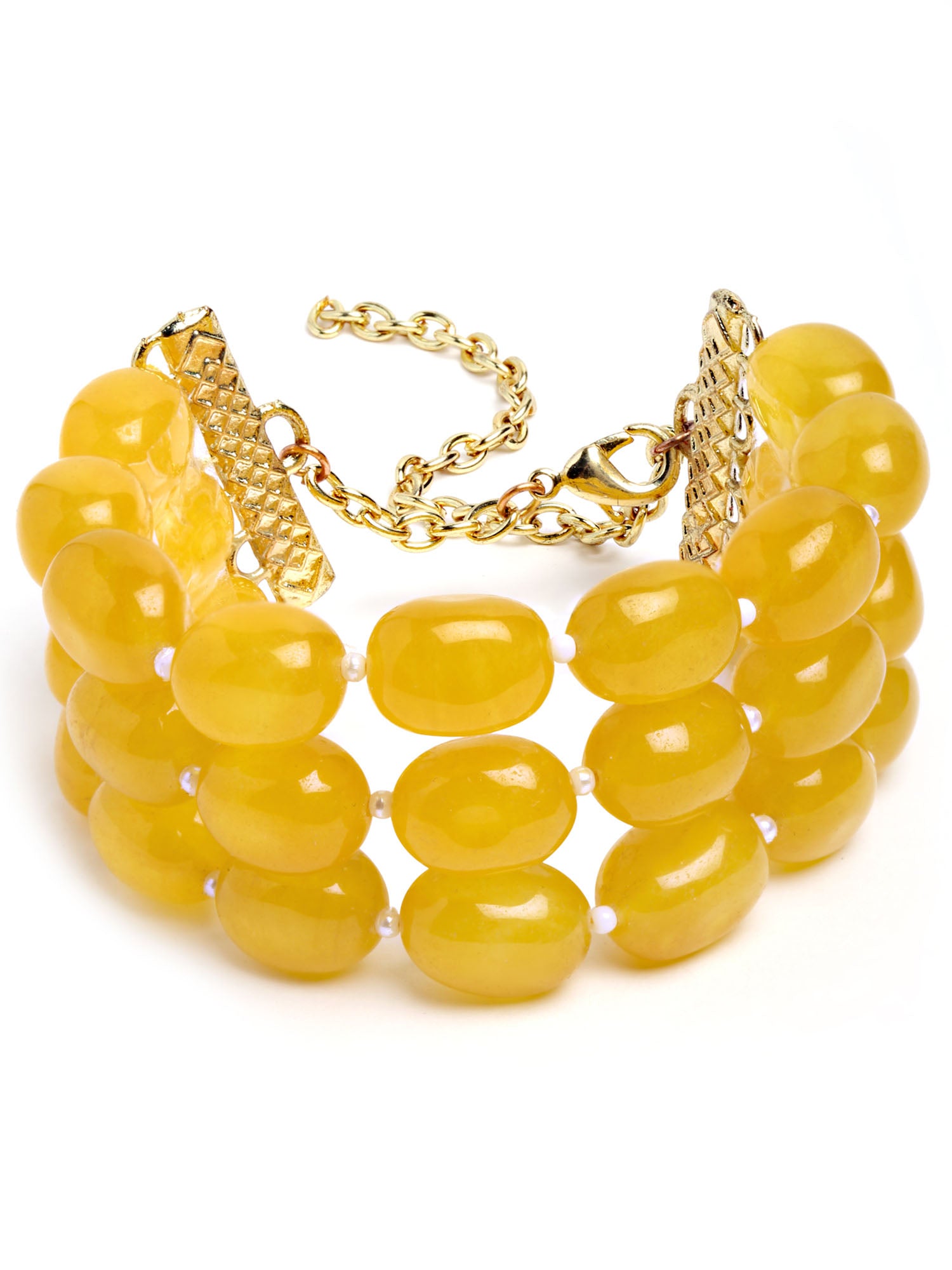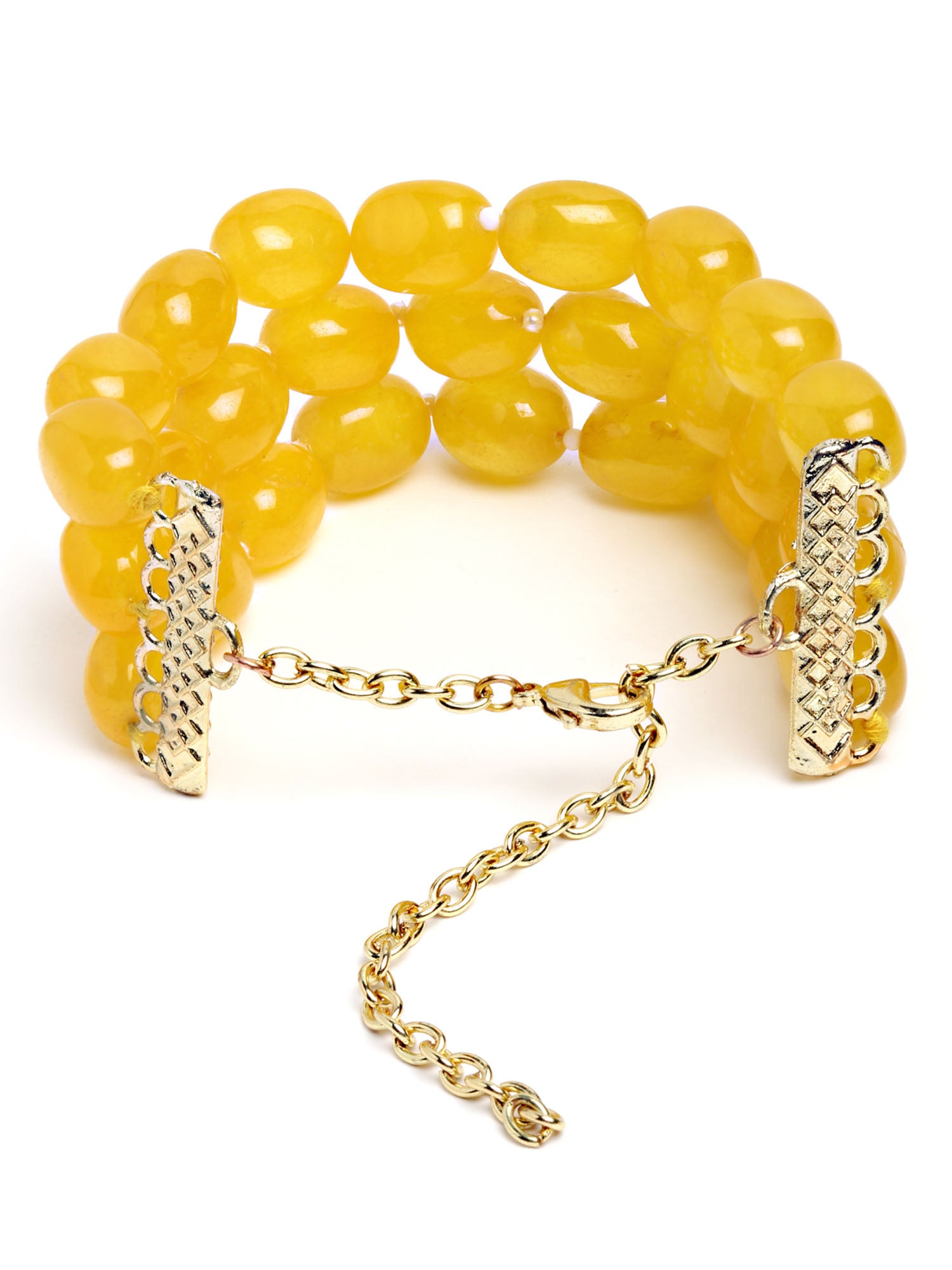 - Karatcart Yellow Tumble Stone Beaded Bracelet for Women. These beautifully handcrafted bracelets are made with high-quality Kundan and Pearls which makes them very skin-friendly.