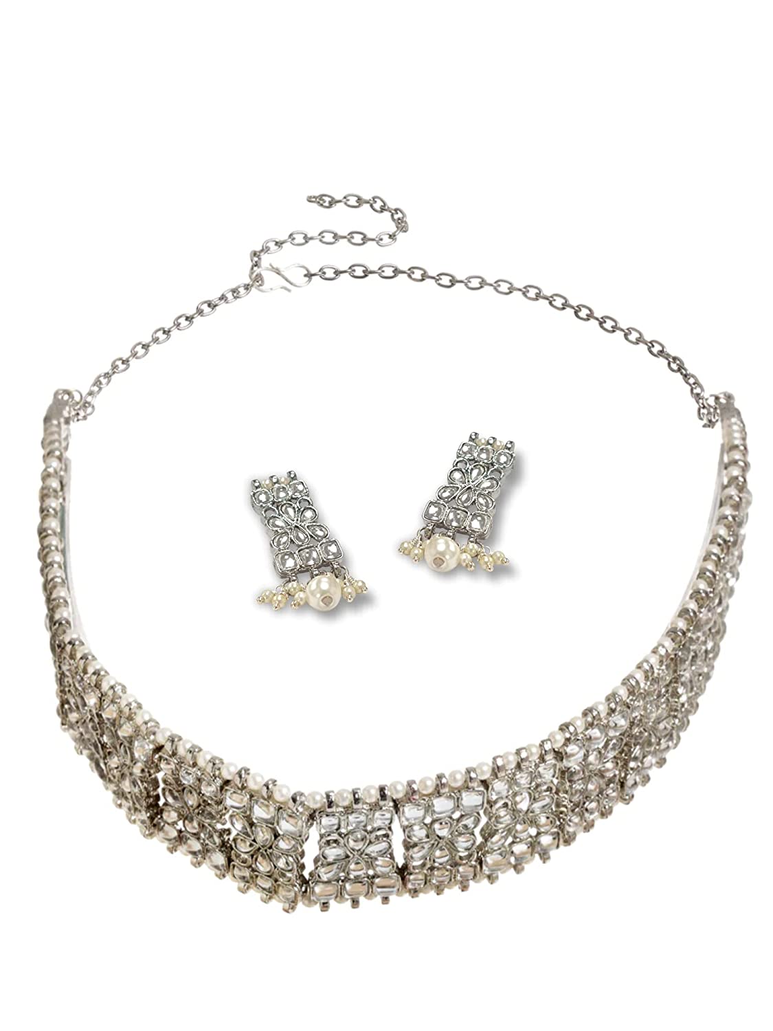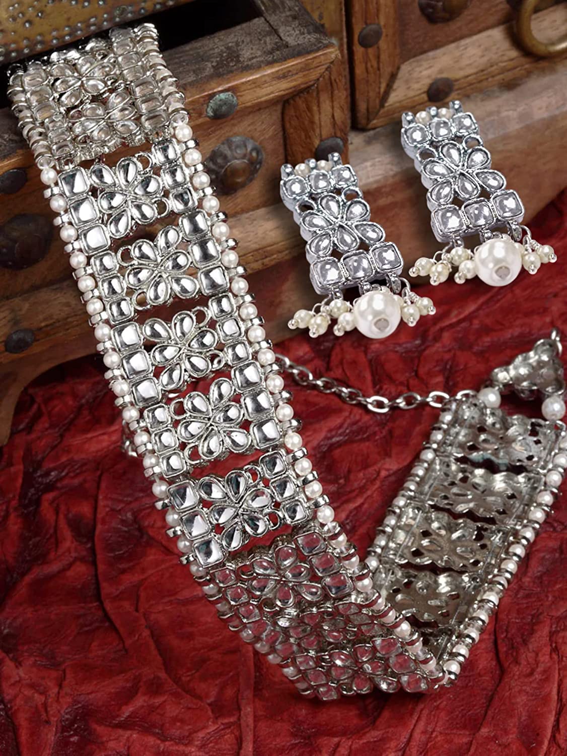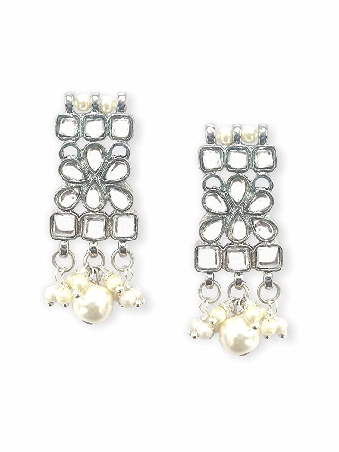 - Karatcart Handcrafted Oxidised Silver Kundan and Pearl Studded Hairband with Earrings Combo for Women. Our products are designed with high-quality Kundan Stones and these products are enhanced with plating that are skin-friendly & with love to reach your heart.