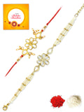 Karatcart Rakhi for Brother and Bhabhi Set of 2 Gold Plated Handmade Kundan Bhiya Bhabhi Rakhi Combo with Roli & Chawal