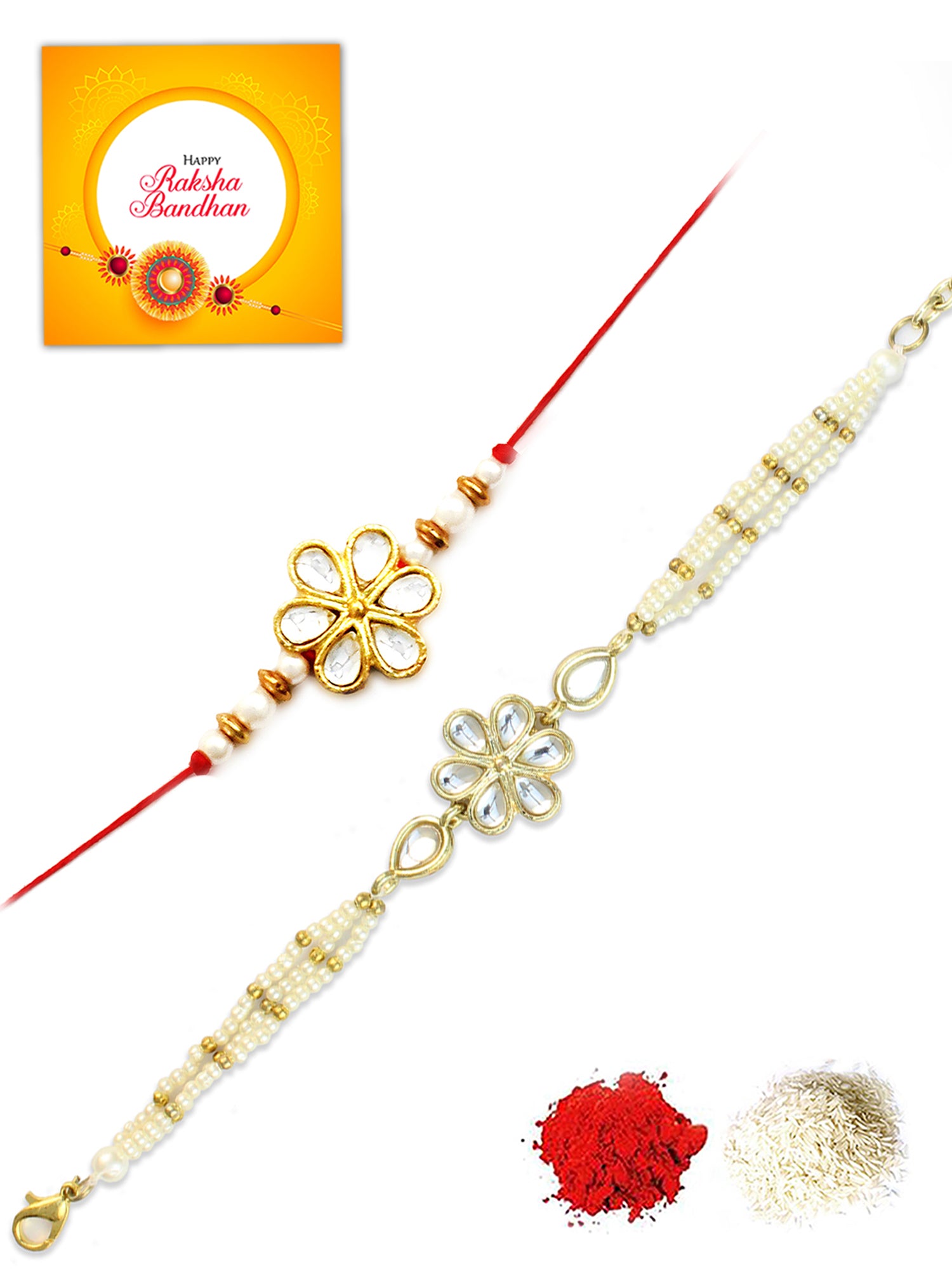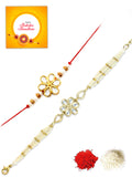 Karatcart Rakhi for Brother and Bhabhi Set of 2 Gold Plated Handmade Kundan Bhiya Bhabhi Rakhi Combo with Roli & Chawal