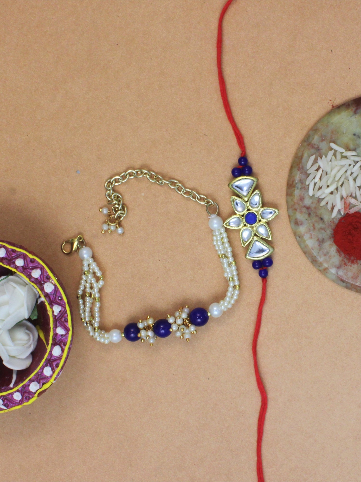 • Karatcart Gold Plated Kundan Rakhi For Bhabhi and Bhaiya