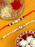 • Our rakhis are gold-plated and embellished with Kundan, Beads, Pearls, and Stones.