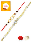 Karatcart Rakhi for Brother and Bhabhi Set of 2 Gold Plated Handmade Kundan Bhiya Bhabhi Rakhi Combo with Roli & Chawal