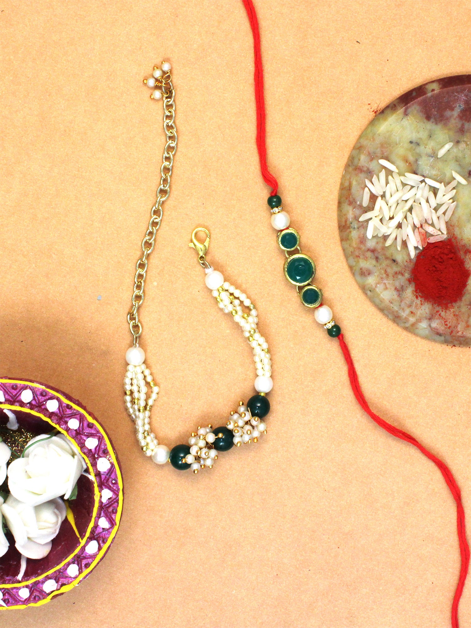 Set of 2 Gold Plated Handmade Kundan Bhaiya Bhabhi Rakhi Combo