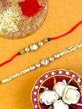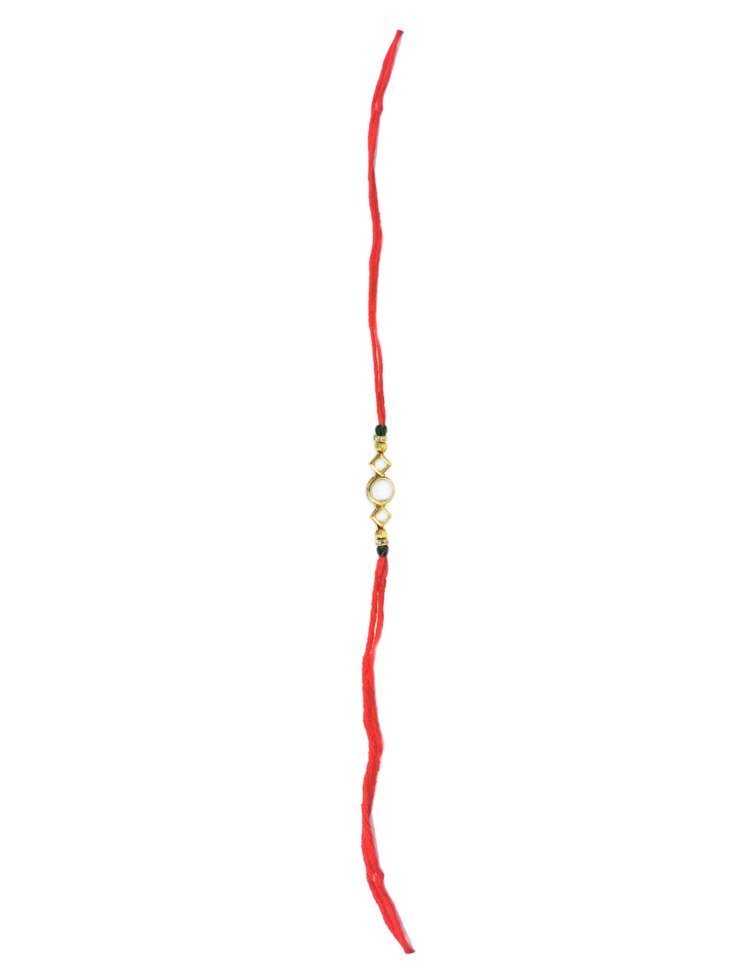 • Our rakhis are gold-plated and embellished with Kundan, Beads, Pearls, and Stones.