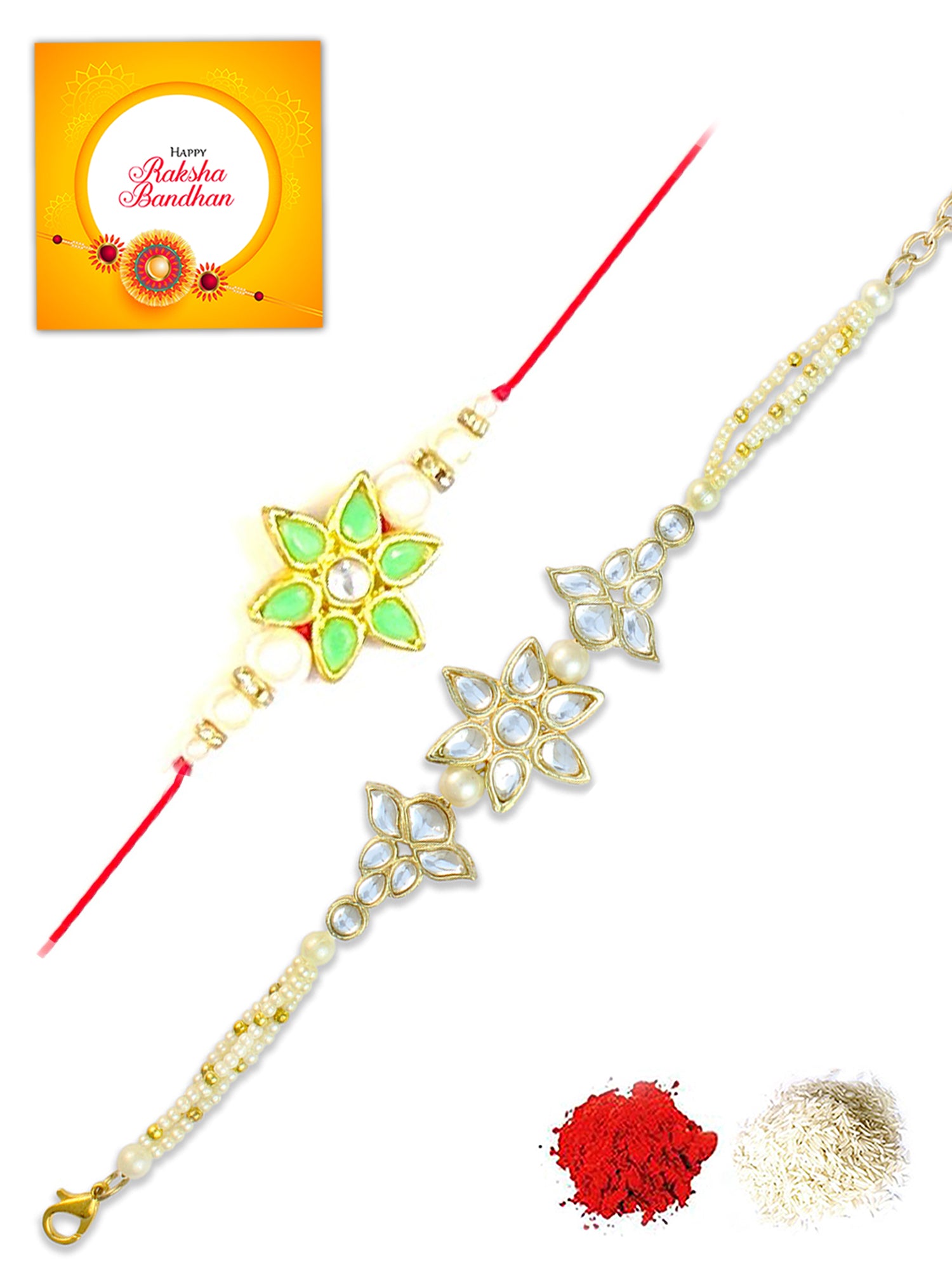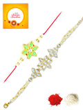 Karatcart Rakhi for Brother and Bhabhi Set of 2 Gold Plated Handmade Kundan Bhiya Bhabhi Rakhi Combo with Roli & Chawal