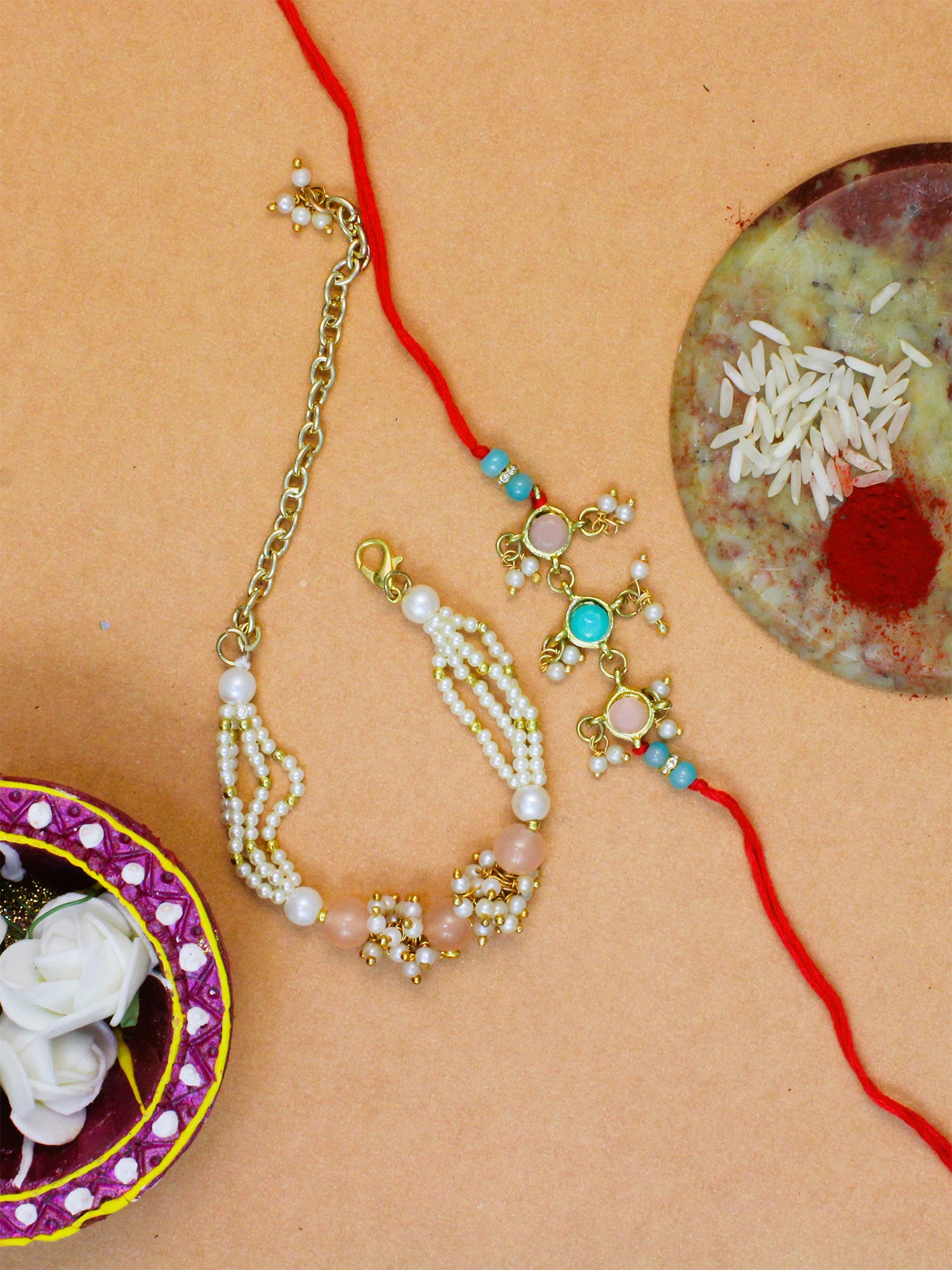 Set of 2 Gold Plated Handmade Kundan Bhaiya Bhabhi Rakhi Combo