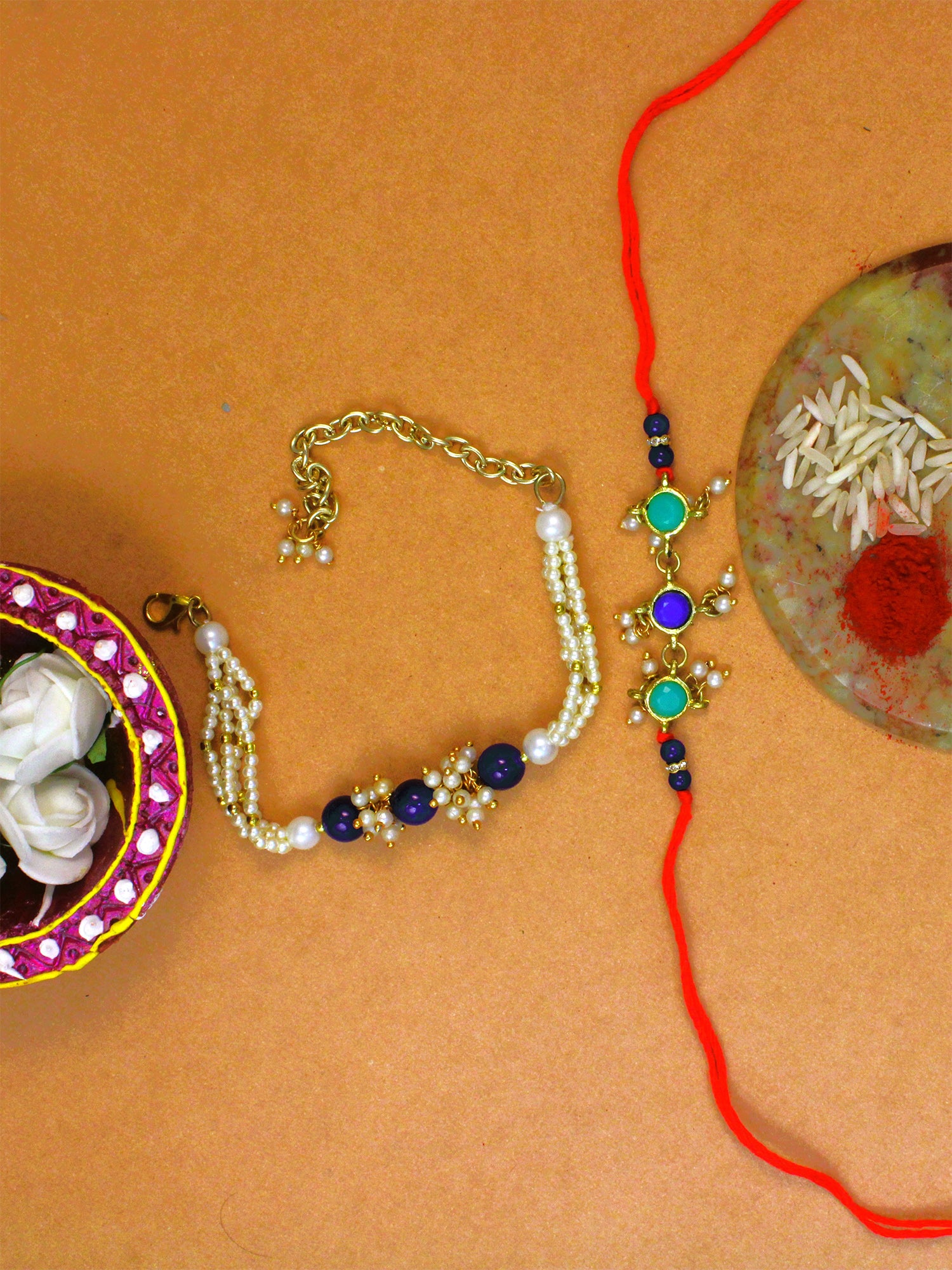Set of 2 Gold Plated Handmade Kundan Bhaiya Bhabhi Rakhi Combo