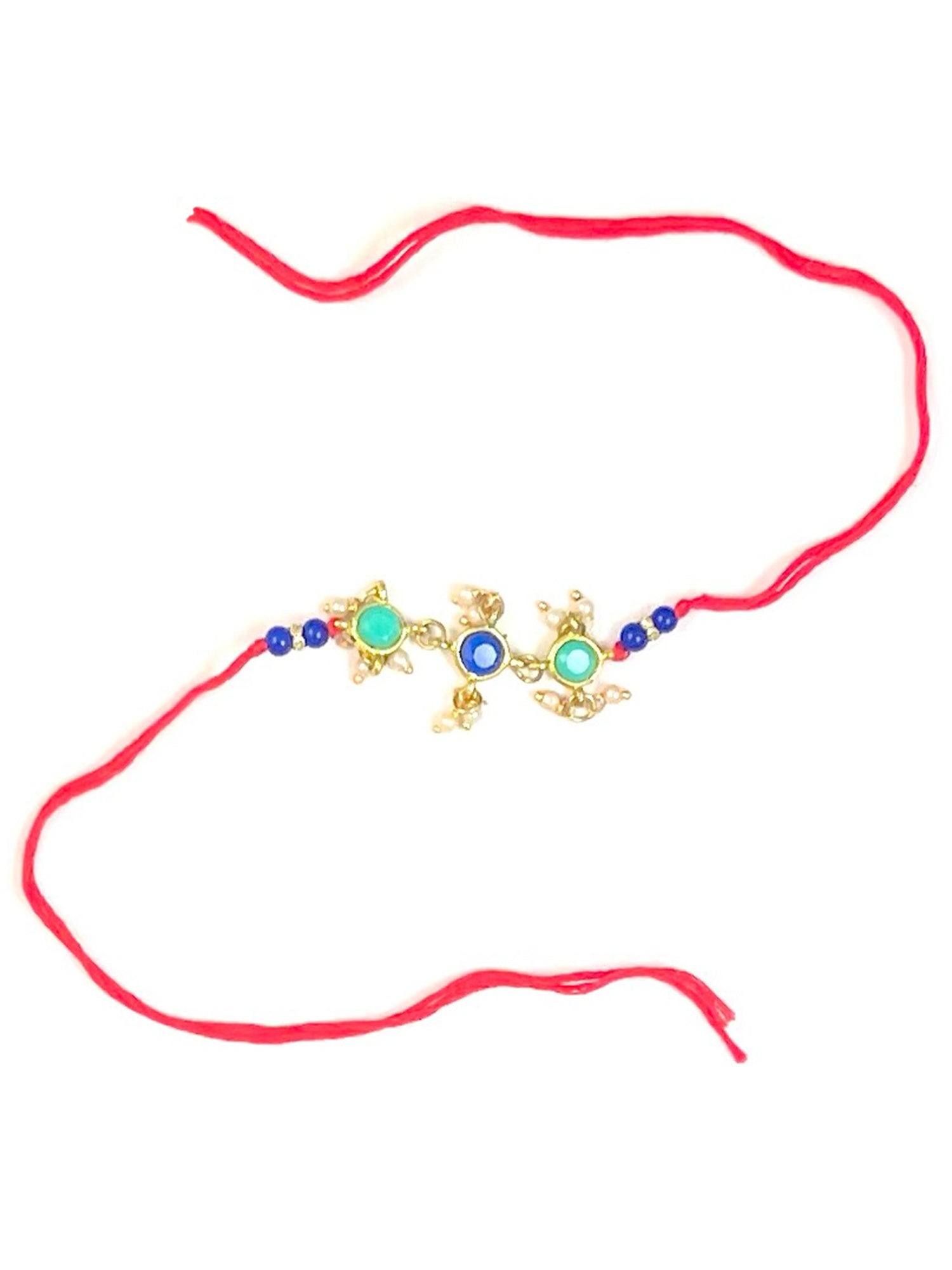 • Karatcart Gold Plated Kundan Rakhi For Bhabhi and Bhaiya