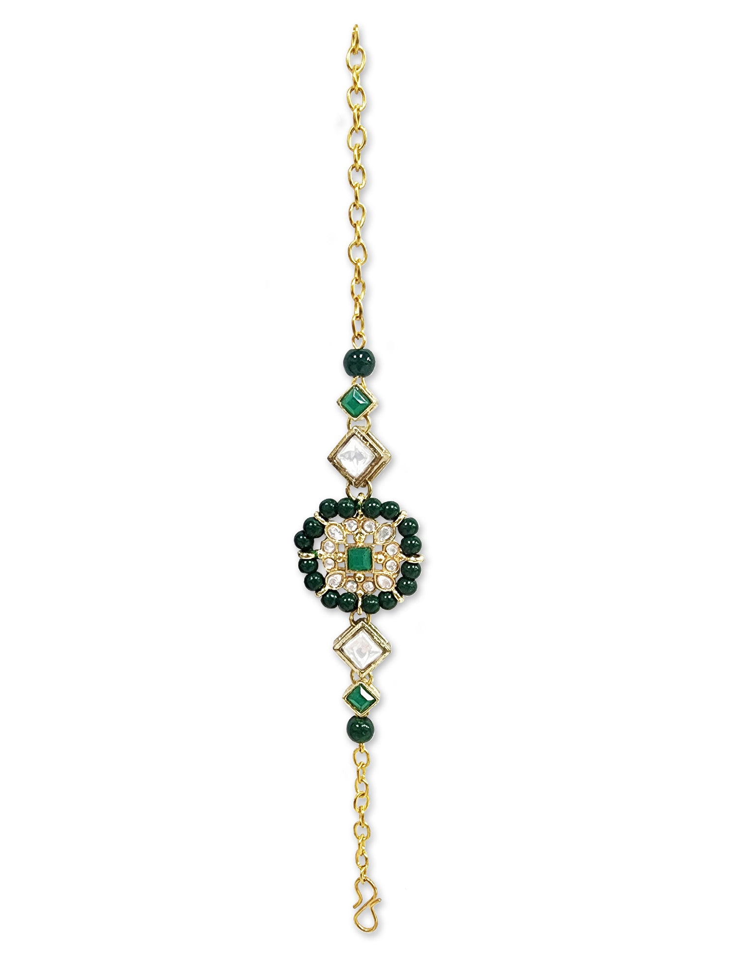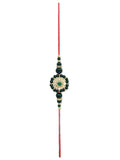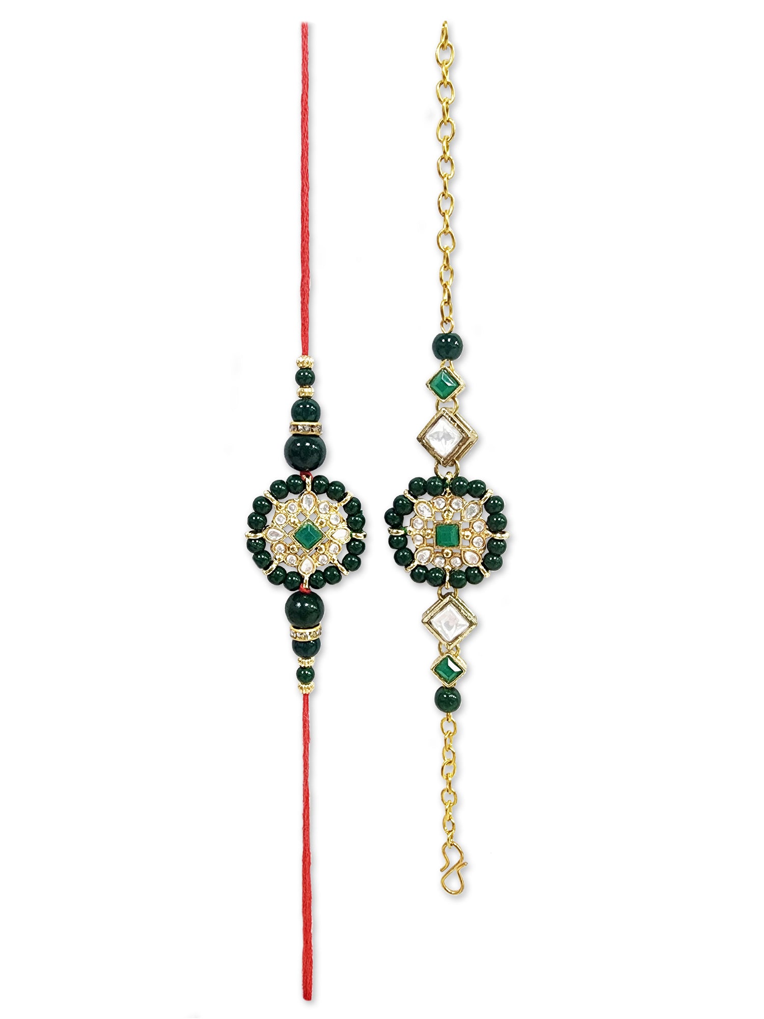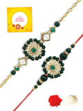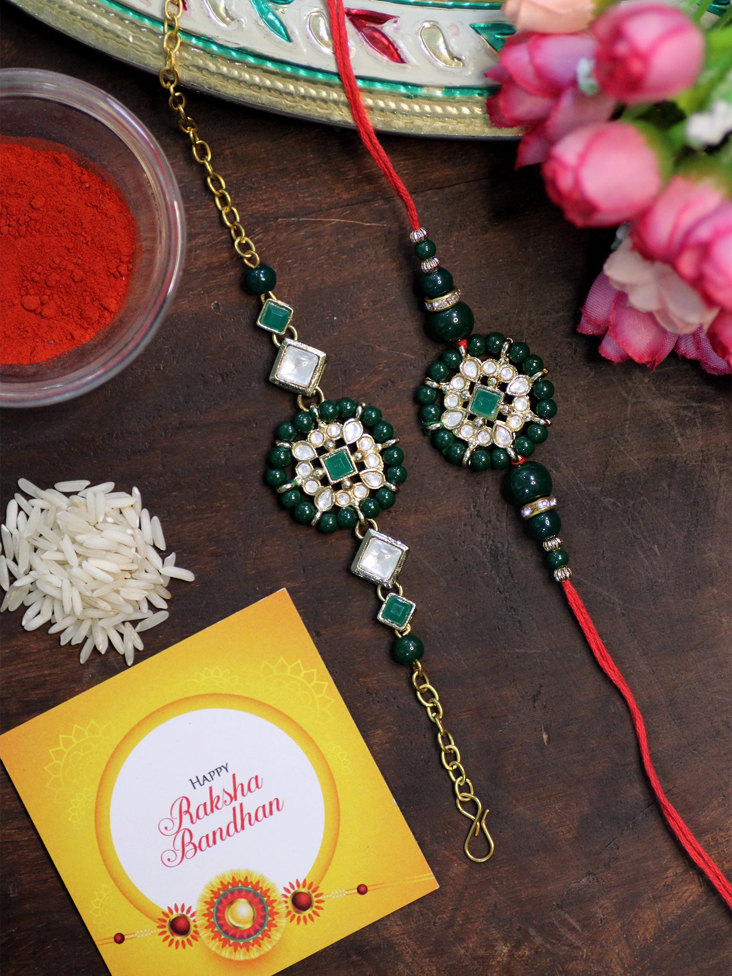 Karatcart Rakhi for Brother and Bhabhi Set of 2 Gold Plated Green Beads Floral Kundan Bhiya Bhabhi Rakhi Combo with Roli & Chawal