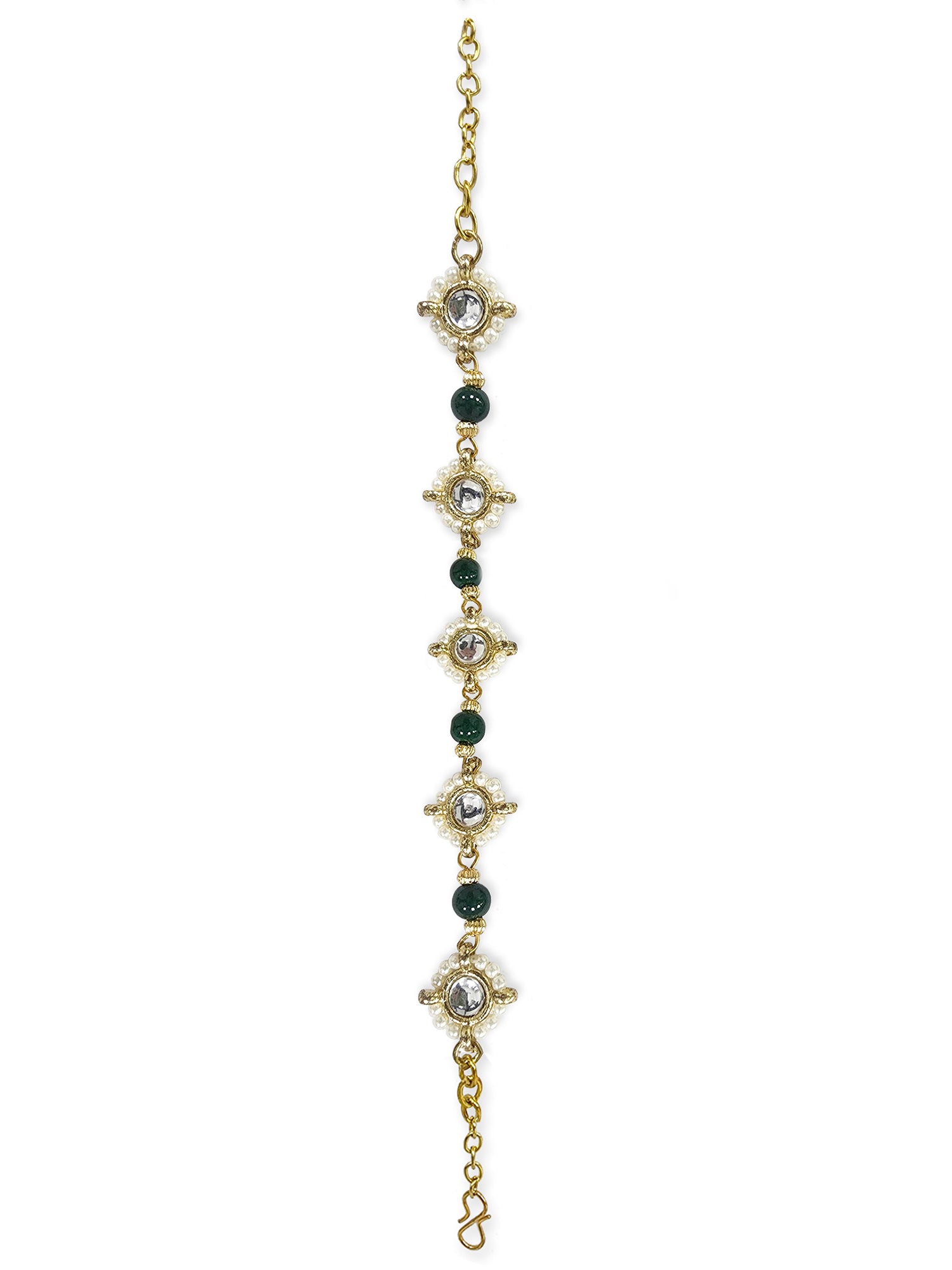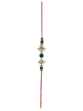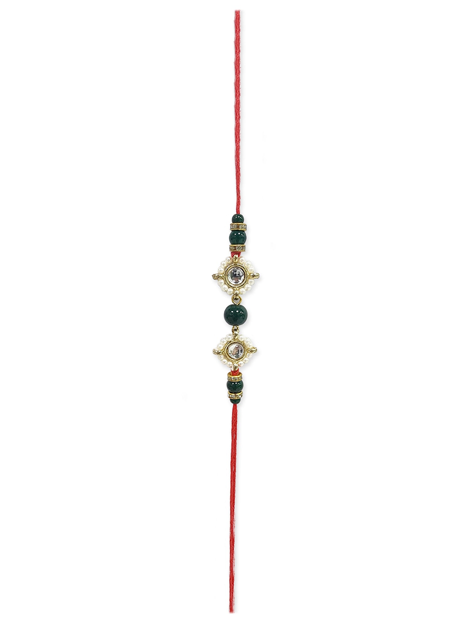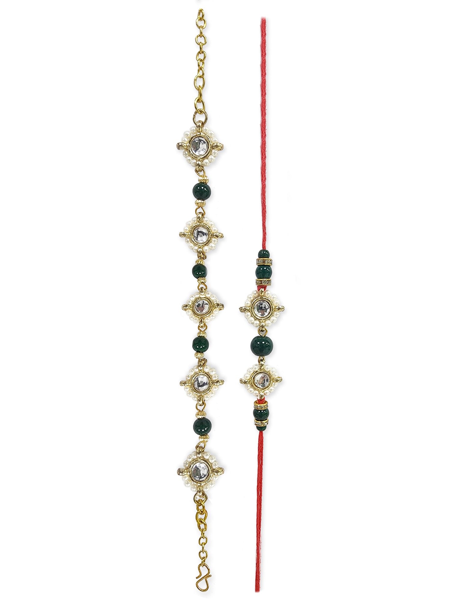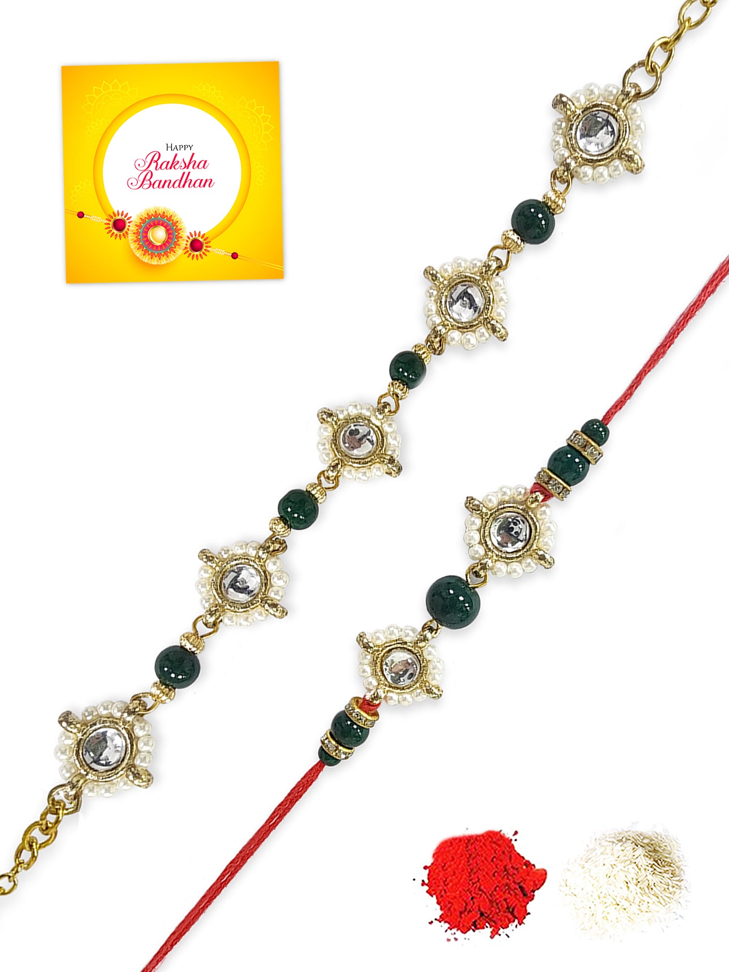 Karatcart Rakhi for Brother and Bhabhi Set of 2 Gold Plated Green Beads Handmade Kundan Bhiya Bhabhi Rakhi Combo with Roli & Chawal