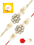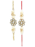 Karatcart Rakhi for Brother and Bhabhi Set of 2 Gold Plated Handmade Floral Kundan Bhiya Bhabhi Rakhi Combo with Roli & Chawal