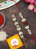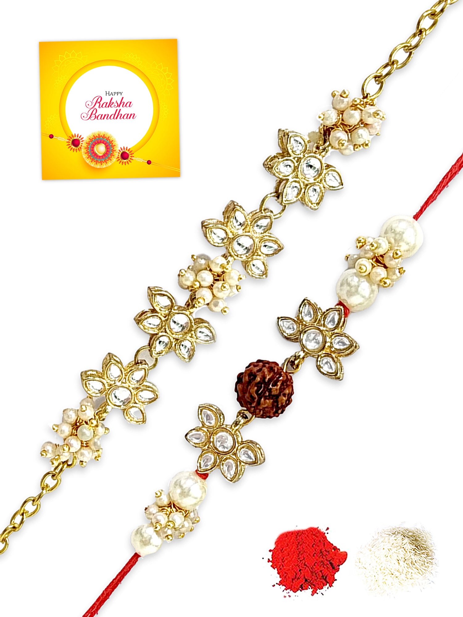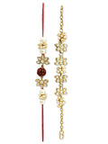 Karatcart Rakhi for Brother and Bhabhi Set of 2 Gold Plated Rudraksha Handmade Kundan Bhiya Bhabhi Rakhi Combo with Roli & Chawal