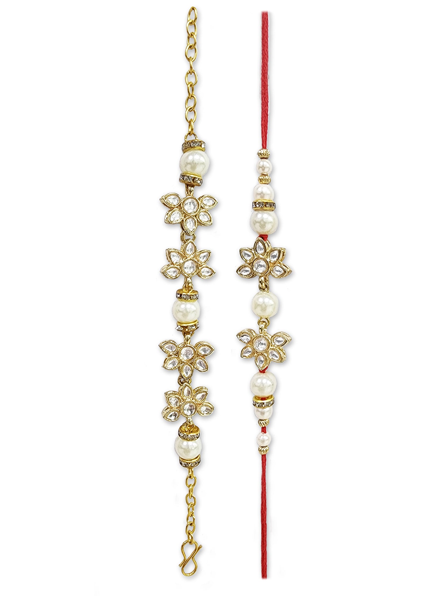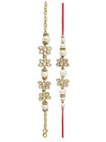 Karatcart Rakhi for Brother and Bhabhi Set of 2 Gold Plated Pearl and Flower Handmade Kundan Bhiya Bhabhi Rakhi Combo with Roli & Chawal
