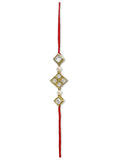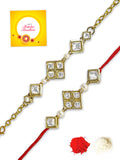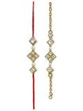 Karatcart Rakhi for Brother and Bhabhi Set of 2 Gold Plated Handmade Square Kundan Bhiya Bhabhi Rakhi Combo with Roli & Chawal