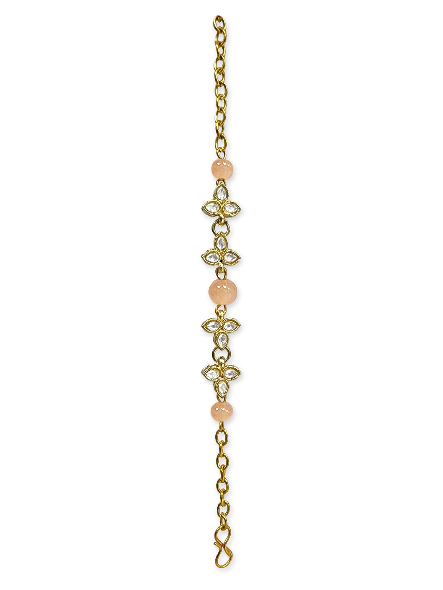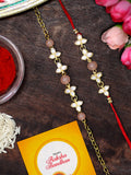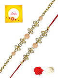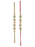 Karatcart Rakhi for Brother and Bhabhi Set of 2 Gold Plated Peach Beads Handmade Kundan Bhiya Bhabhi Rakhi Combo with Roli & Chawal