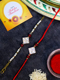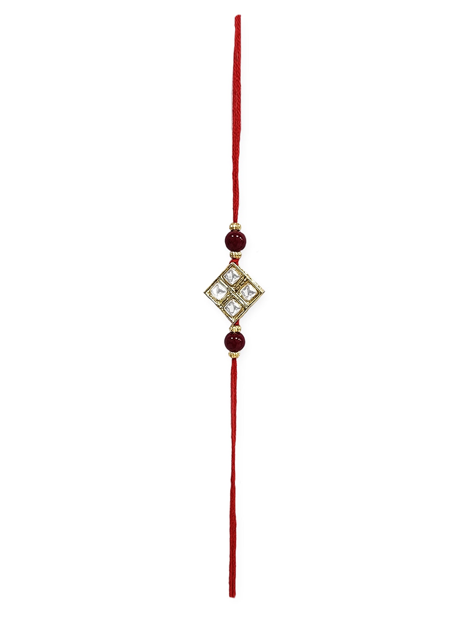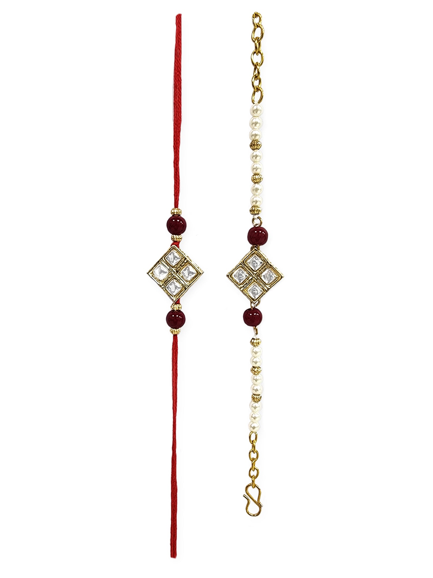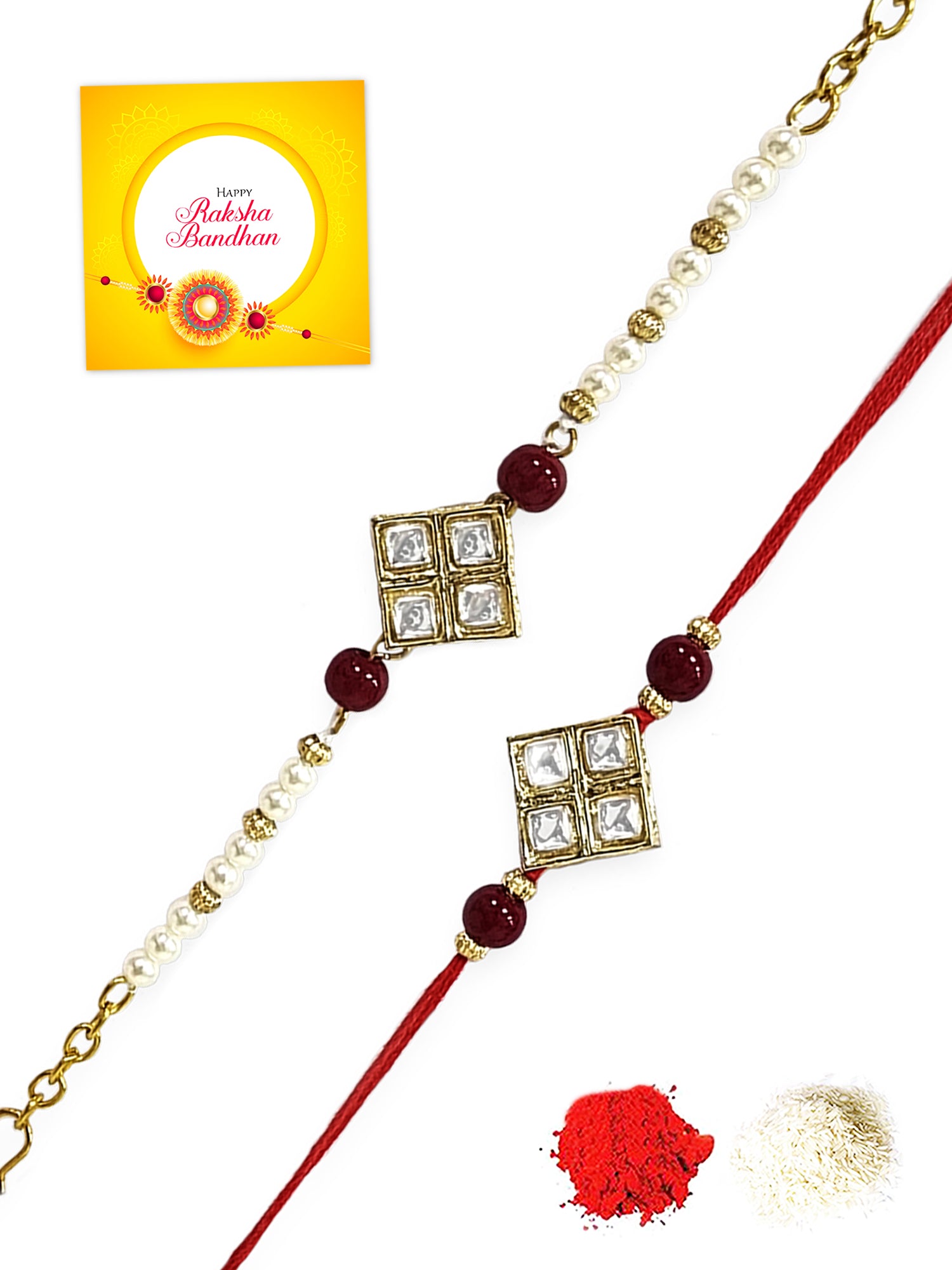 Karatcart Rakhi for Brother and Bhabhi Set of 2 Gold Plated Red Bead Square Kundan Bhiya Bhabhi Rakhi Combo with Roli & Chawal