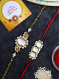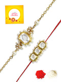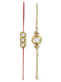Karatcart Rakhi for Brother and Bhabhi Set of 2 Gold Plated Square Polki Kundan Bhiya Bhabhi Rakhi Combo with Roli & Chawal