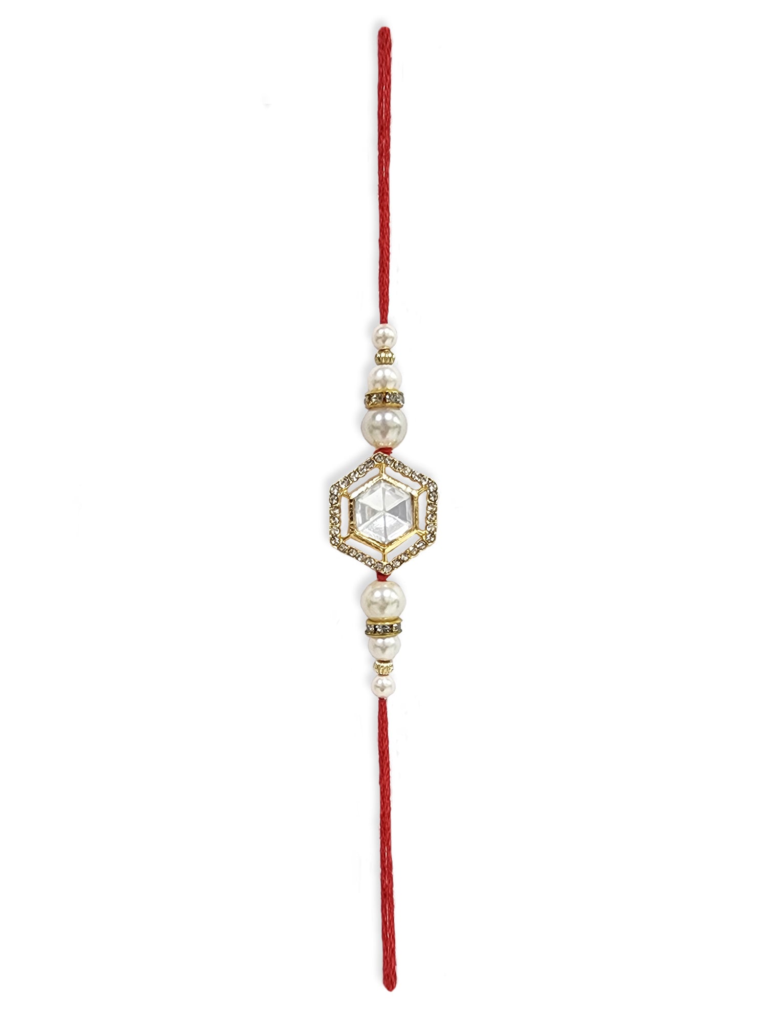 - Our rakhis are gold-plated and embellished with Kundan, Beads, Pearls, and Stones.