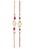 Karatcart Rakhi for Brother and Bhabhi Set of 2 Gold Plated Pink Round Polki Kundan Bhiya Bhabhi Rakhi Combo with Roli & Chawal