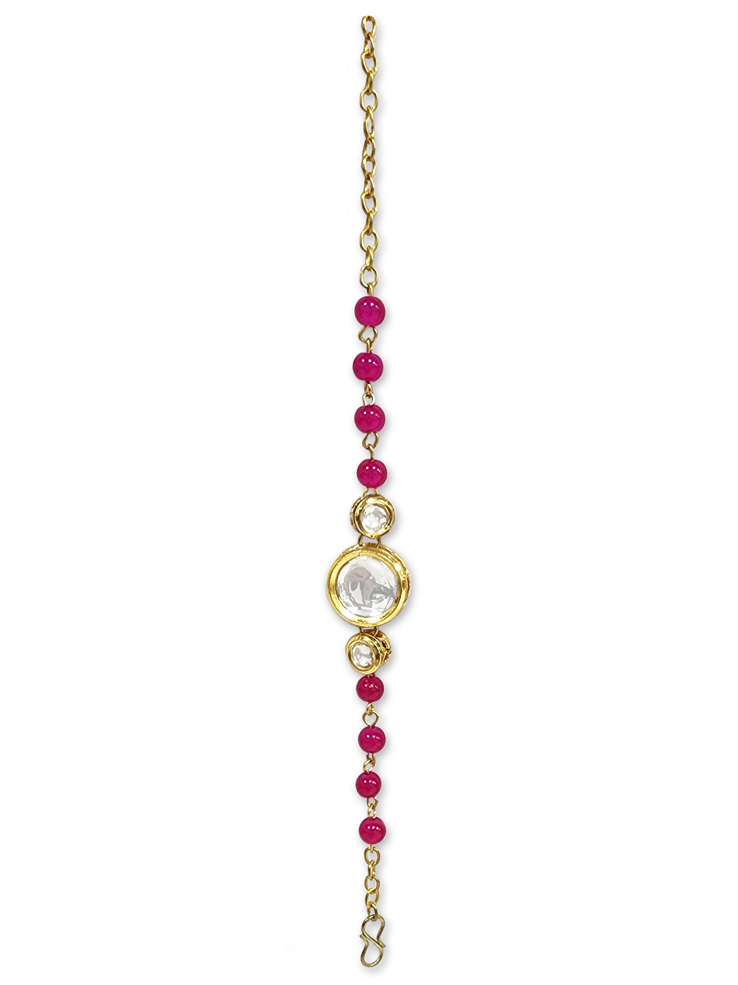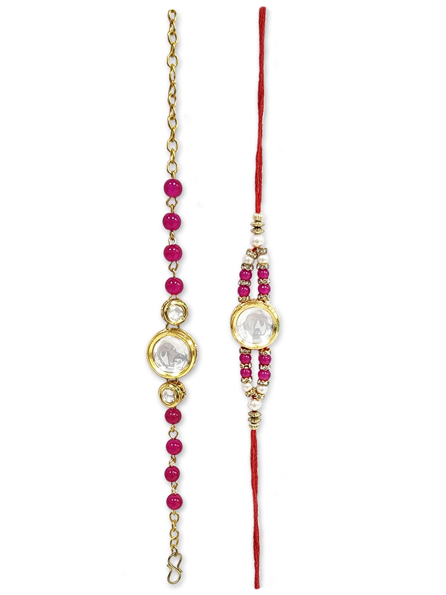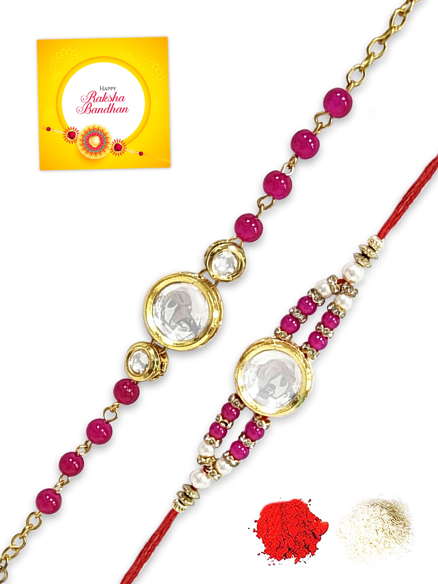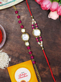 Karatcart Rakhi for Brother and Bhabhi Set of 2 Gold Plated Pink Beads Round Polki Kundan Bhiya Bhabhi Rakhi Combo with Roli & Chawal