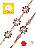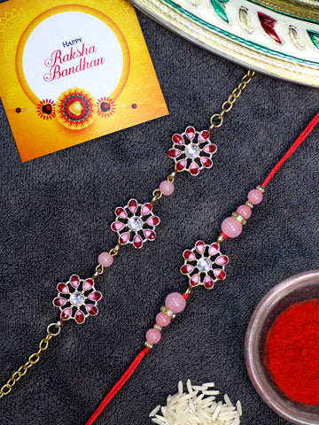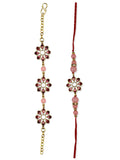 Karatcart Rakhi for Brother and Bhabhi Set of 2 Gold Plated Red and Pink Two Tone Kundan Handmade Bhiya Bhabhi Rakhi Combo with Roli & Chawal