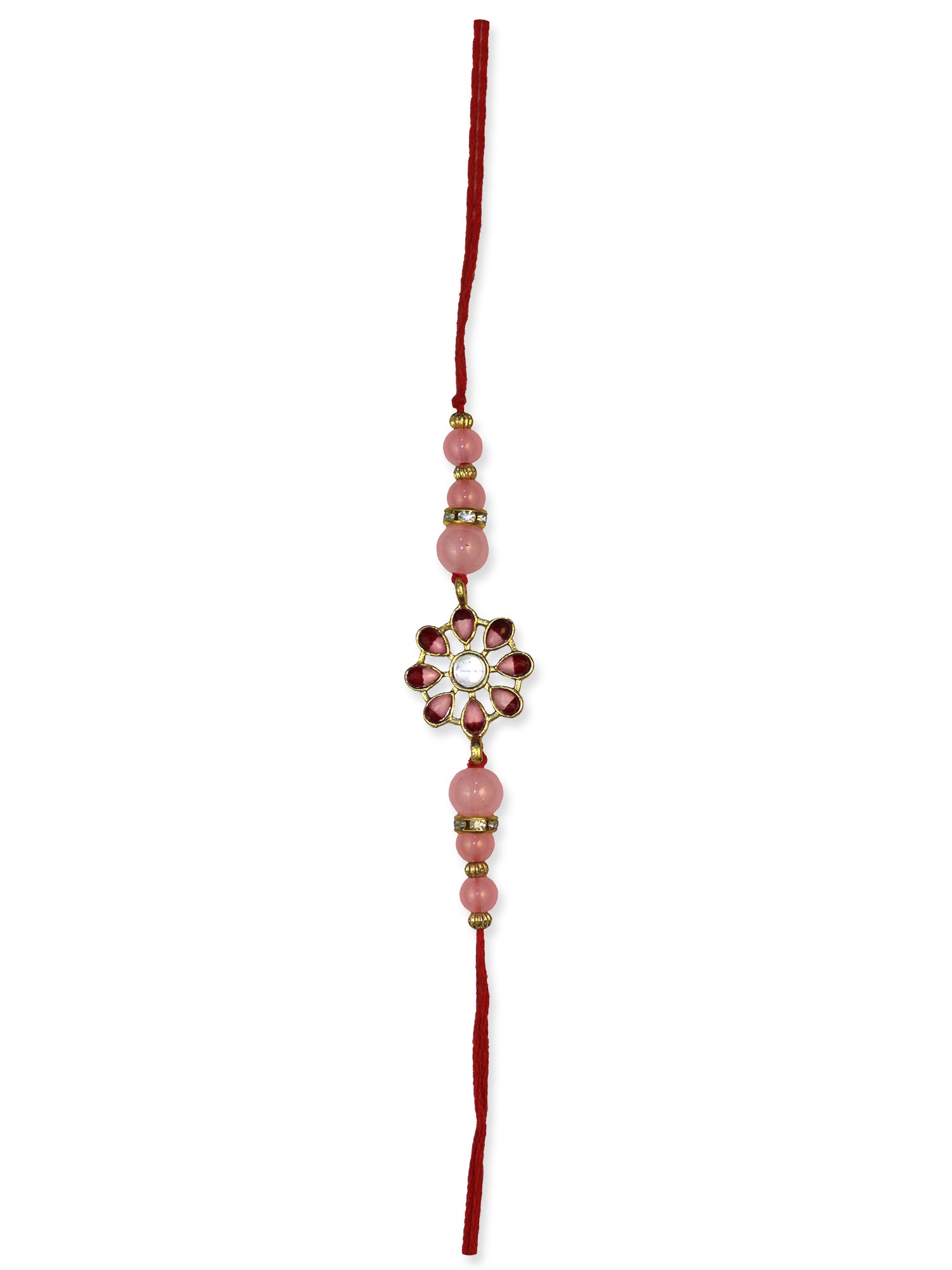 - Our rakhis are gold-plated and embellished with Kundan, Beads, Pearls, and Stones.