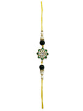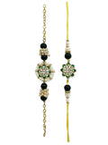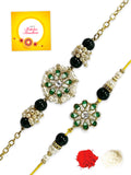 Karatcart Rakhi for Brother and Bhabhi Set of 2 Gold Plated Green Two Tone Kundan Handmade Bhiya Bhabhi Rakhi Combo with Roli & Chawal