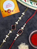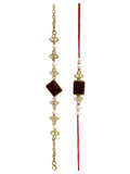 Karatcart Rakhi for Brother and Bhabhi Set of 2 Gold Plated Red Carved Stone Kundan Handmade Bhiya Bhabhi Rakhi Combo with Roli & Chawal