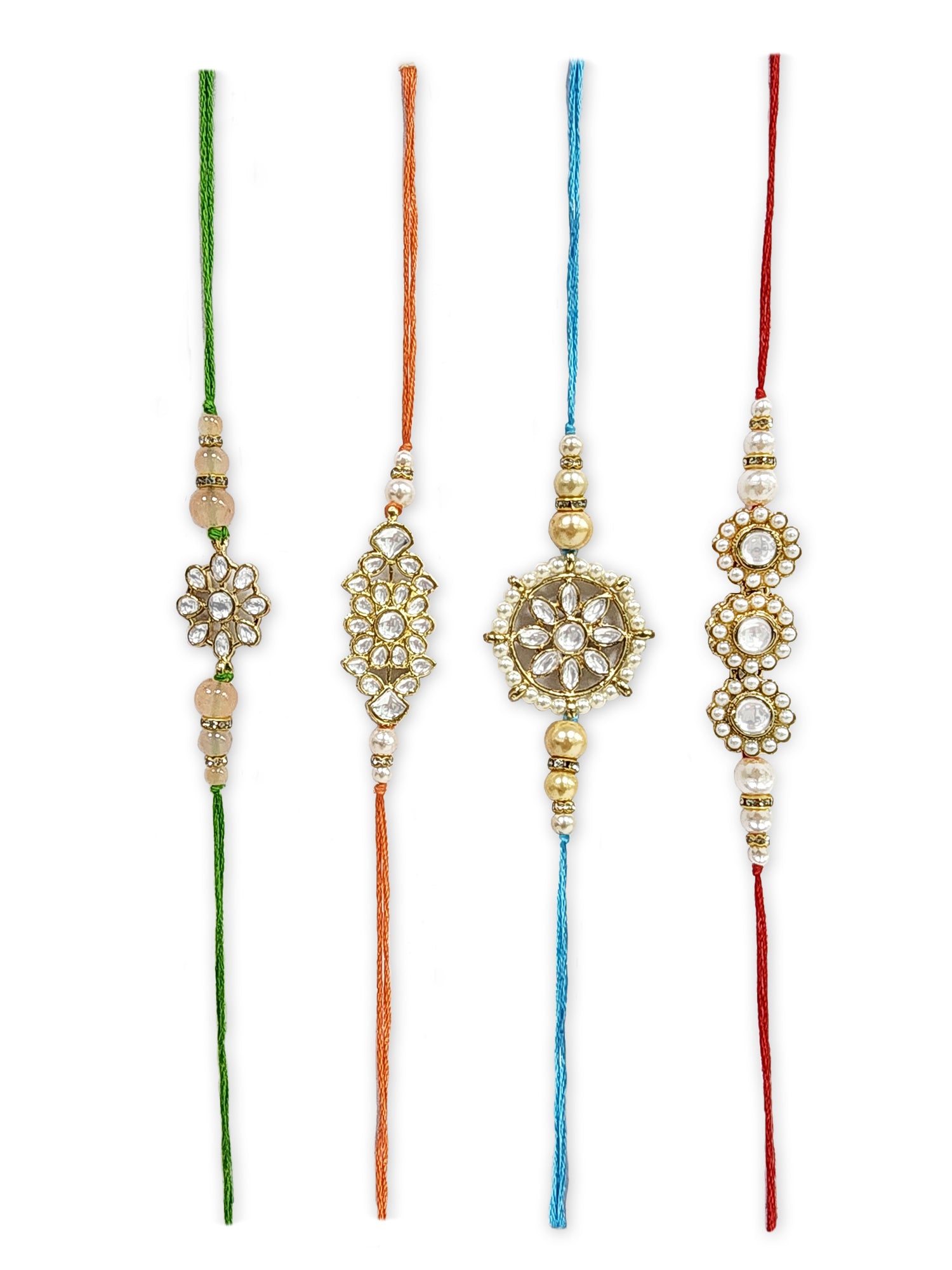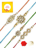 Karatcart Rakhi for Brother Set of 4 Gold Plated Handmade Kundan Rakhi with Roli & Chawal