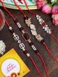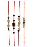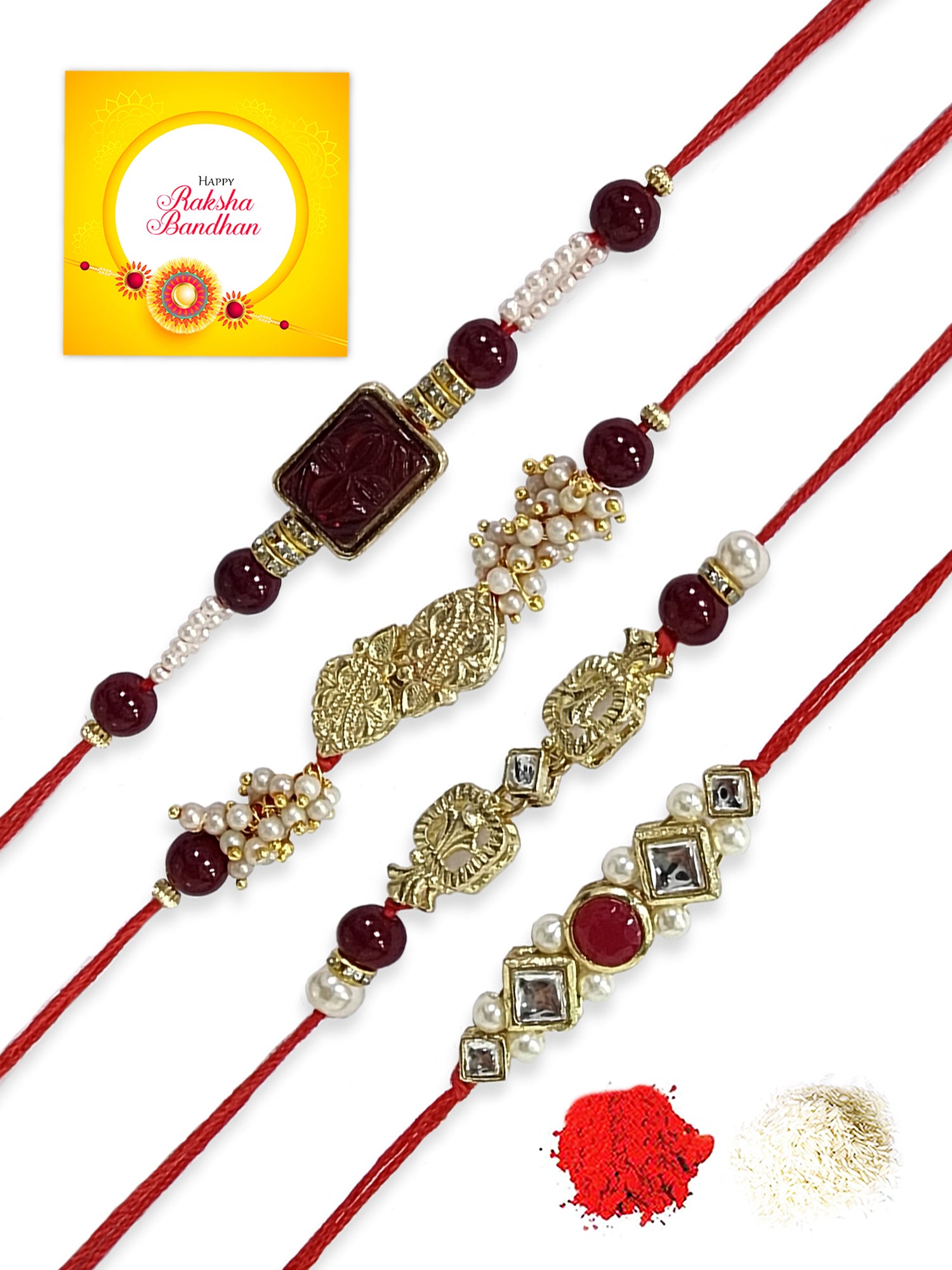 Karatcart Rakhi for Brother Set of 4 Gold Plated Handmade Kundan Rakhi with Roli & Chawal
