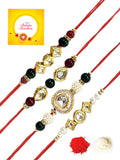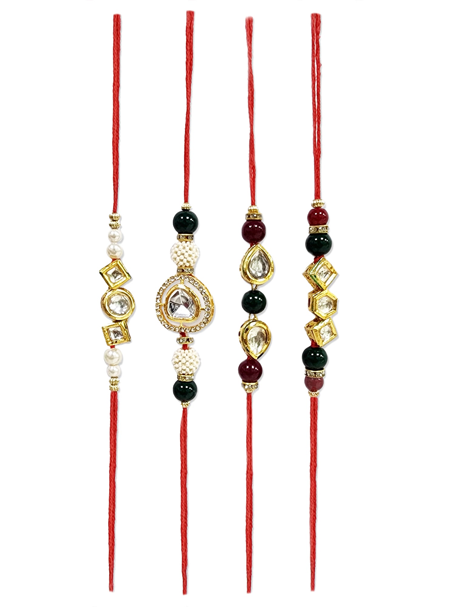 Karatcart Rakhi for Brother Set of 4 Gold Plated Handmade Polki Kundan Rakhi with Roli & Chawal