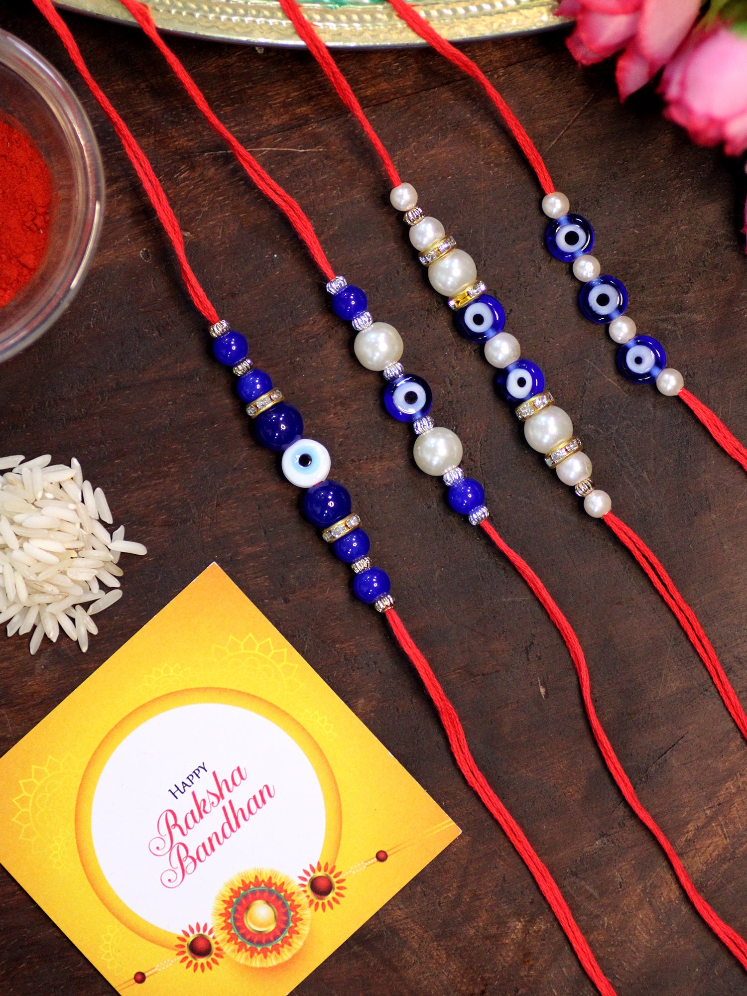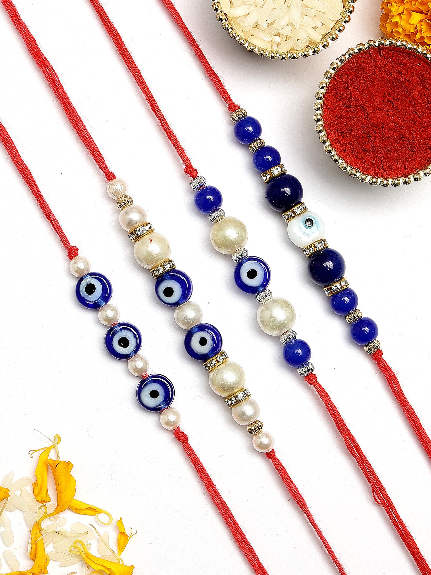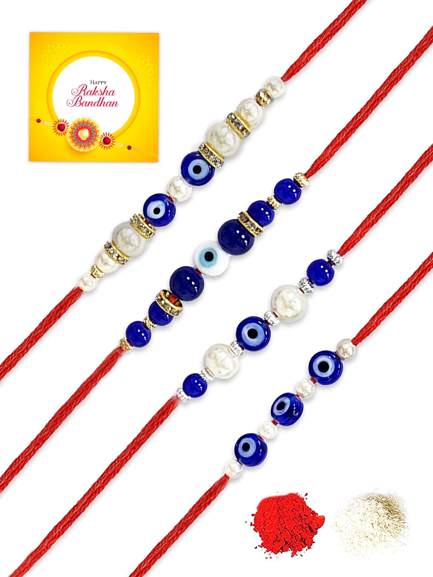 Karatcart Rakhi for Brother Set of 4 Evil Eye Handmade Rakhi with Roli & Chawal
