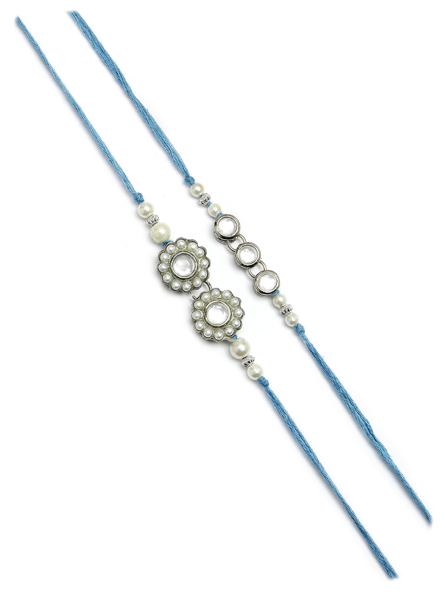 - Our rakhis are gold-plated and embellished with Kundan, Beads, Pearls, and Stones.