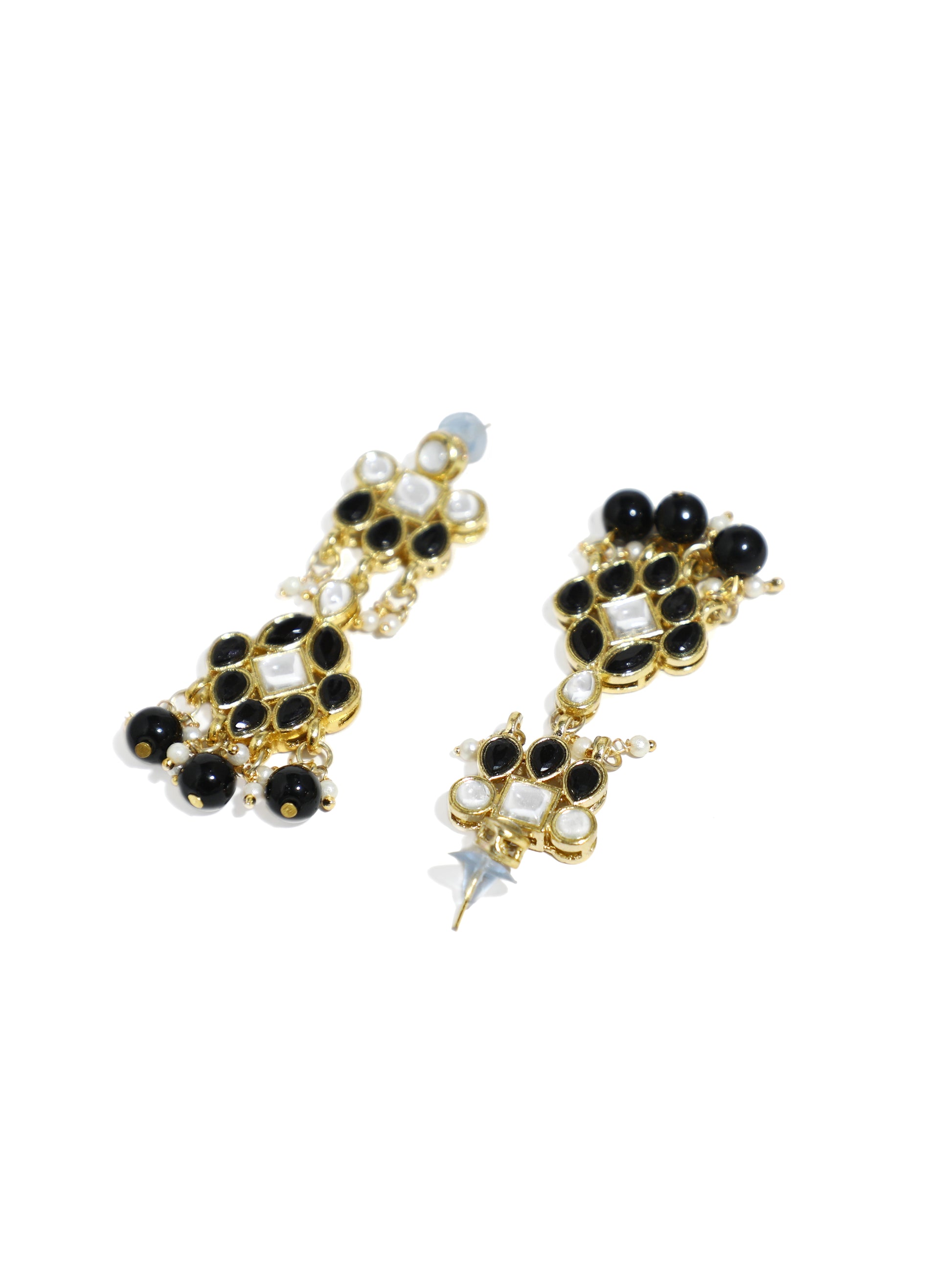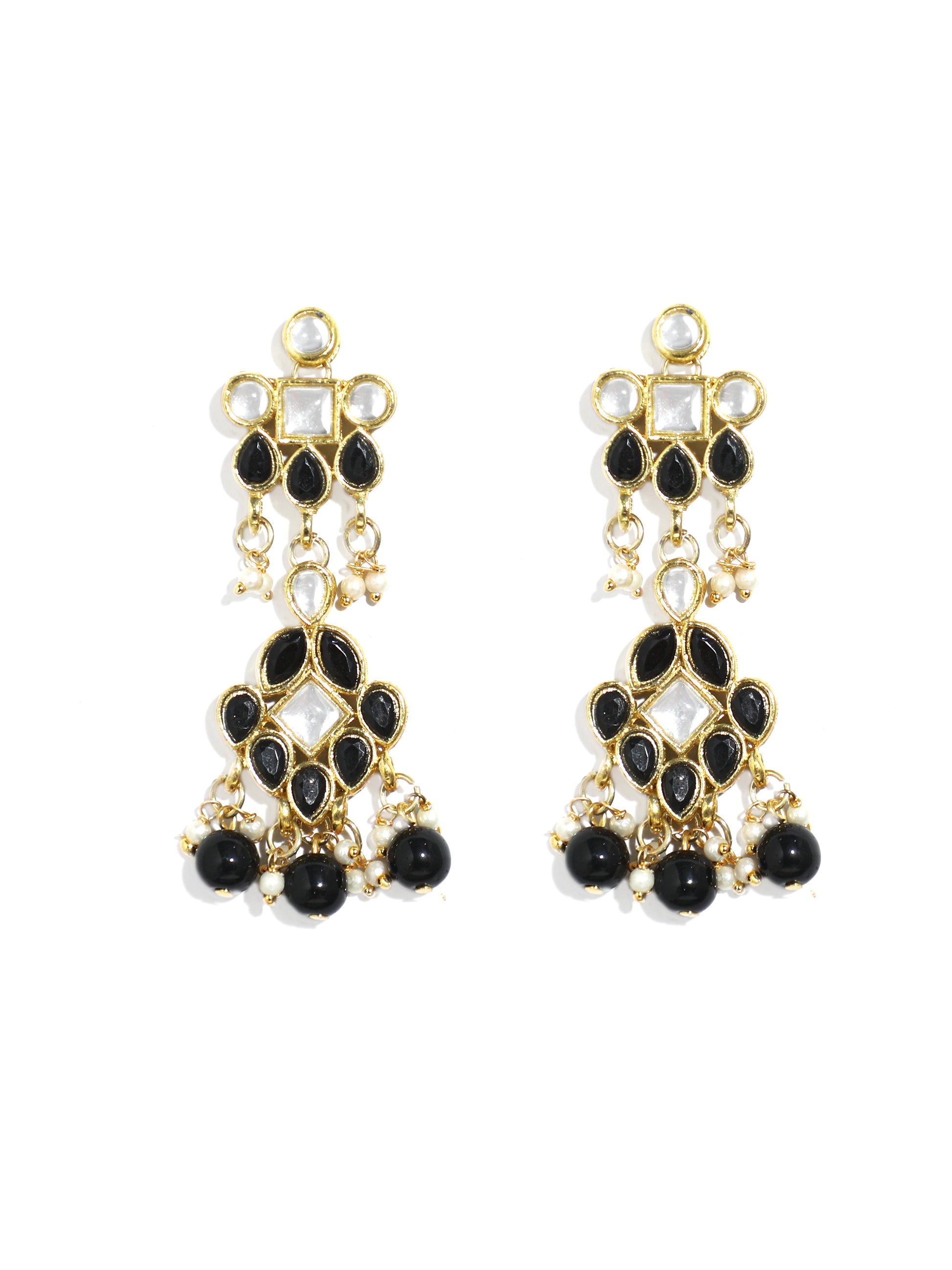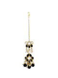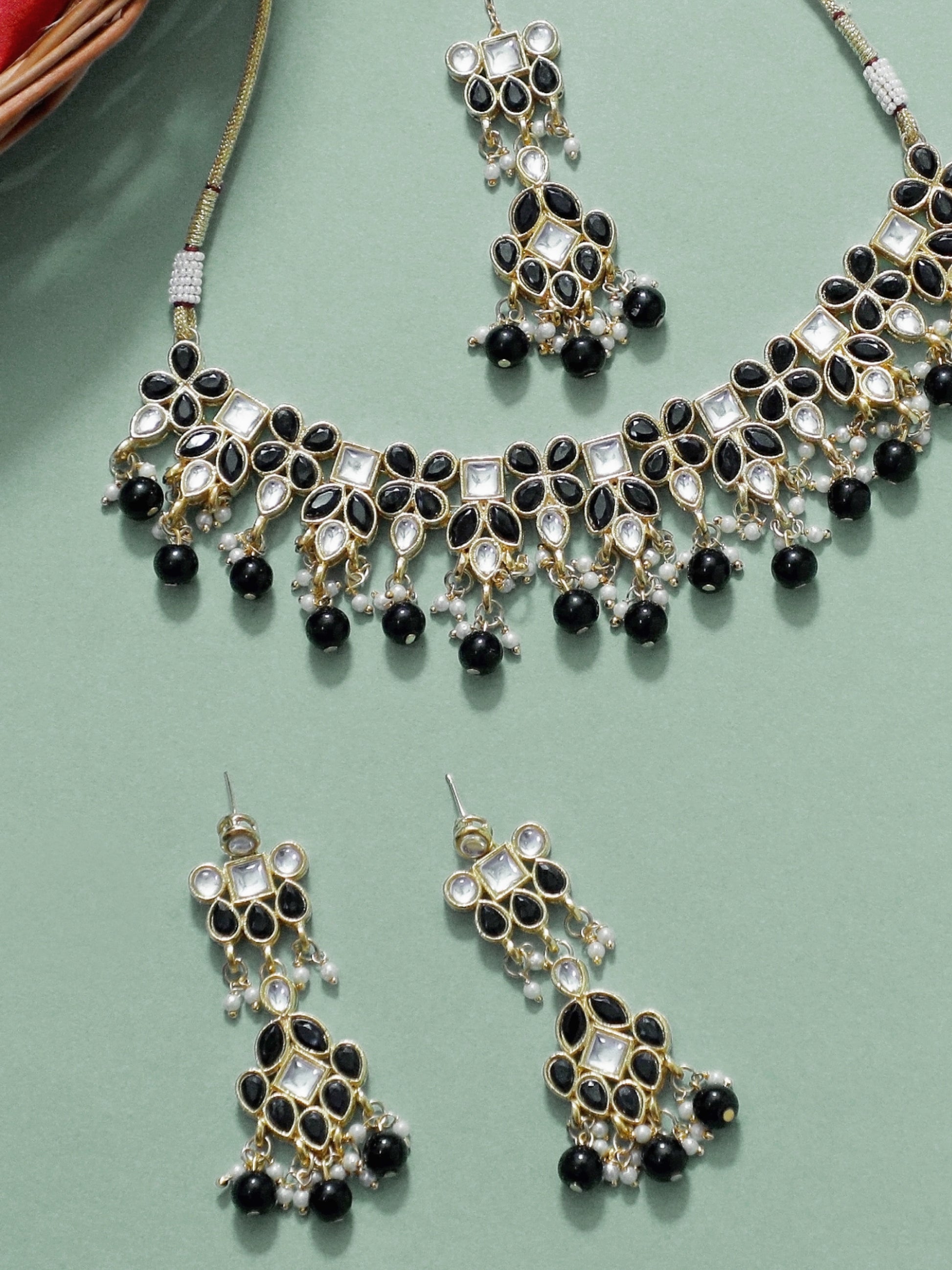 - Kundan Black Choker Necklace Set with Earrings and Maangtikka. Best when paired with Indian or Indo Western Attire. Made with Internationally approved skin-friendly material, this set is a must-have for your collection.