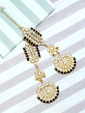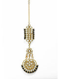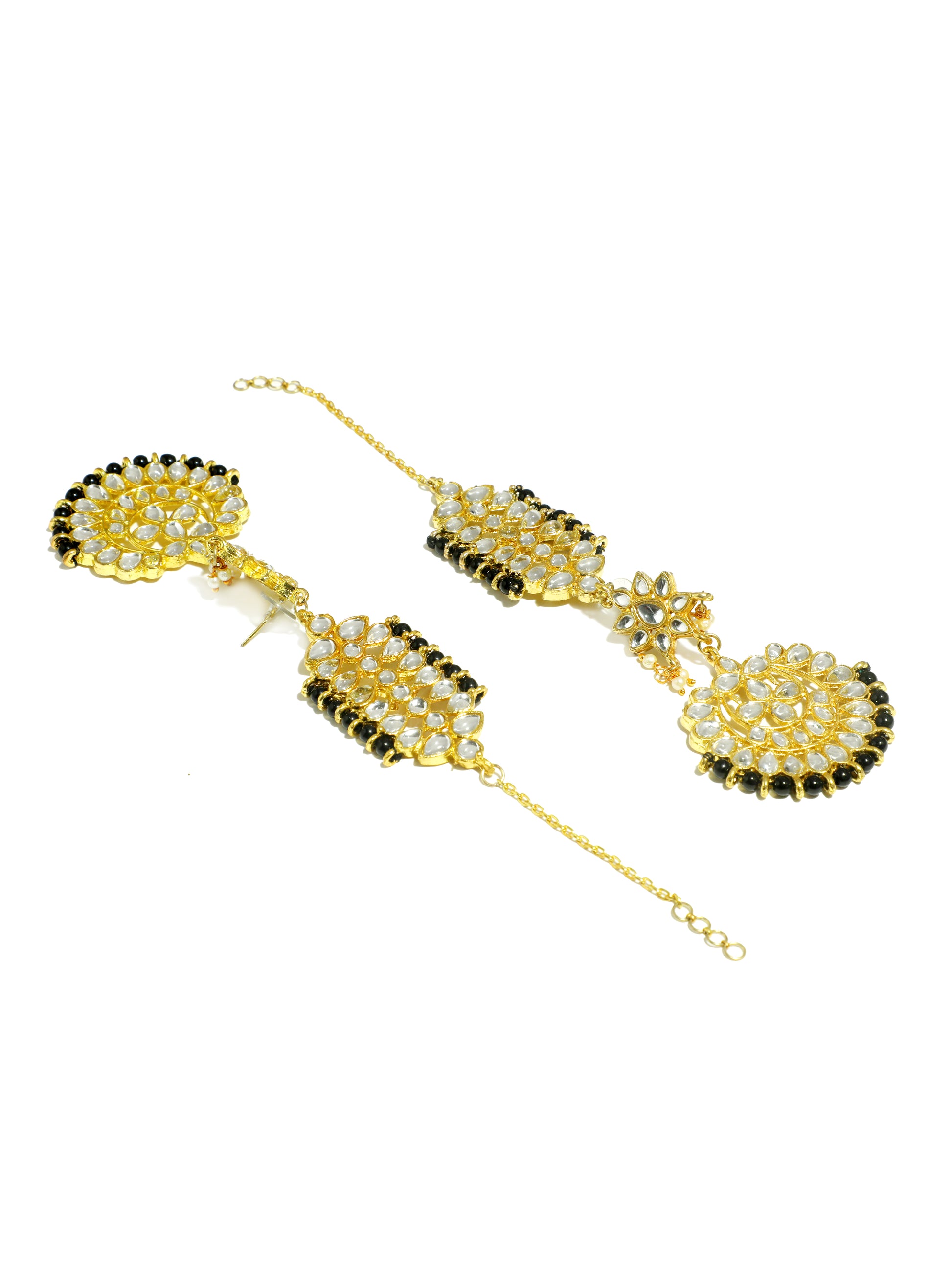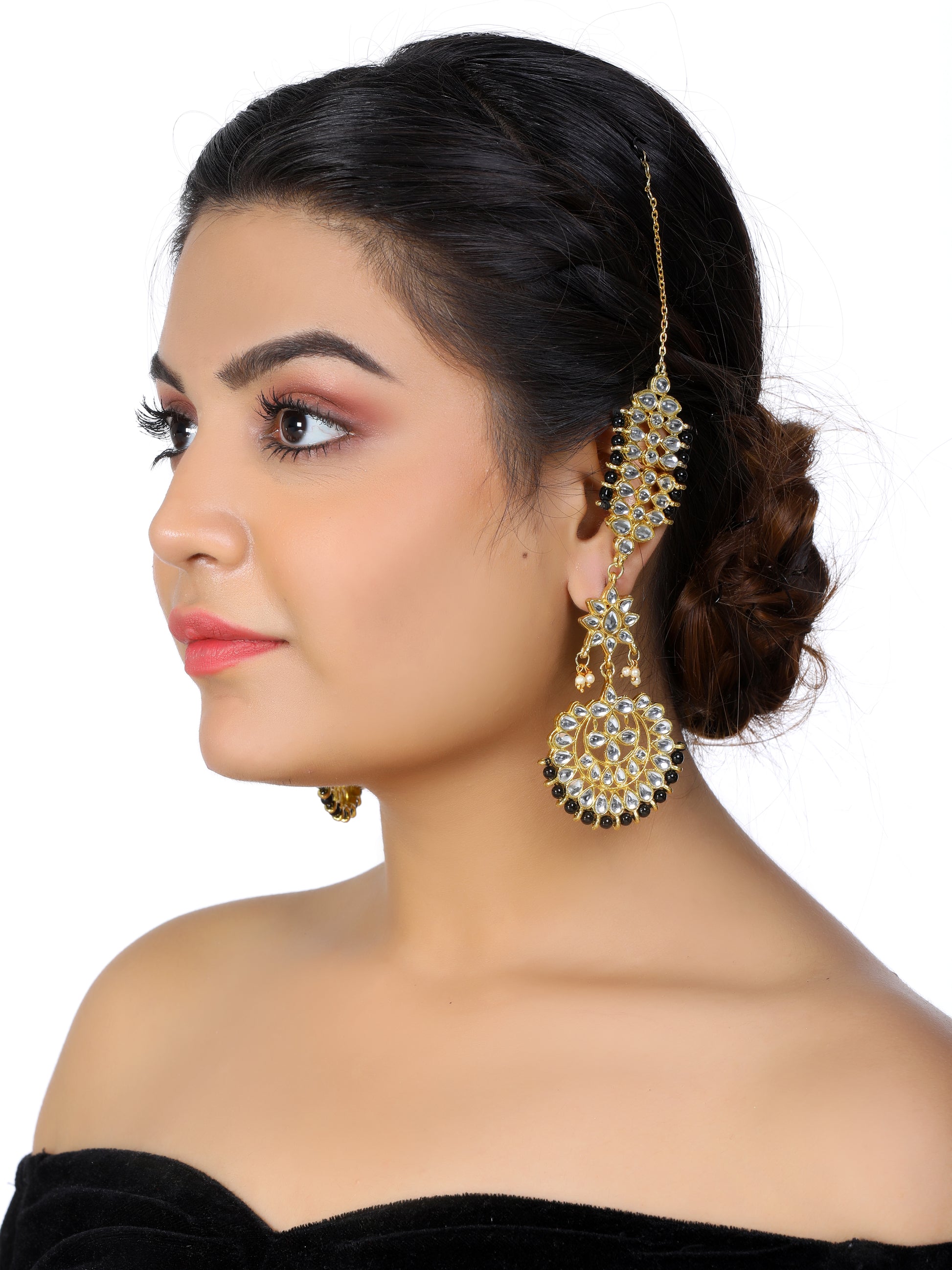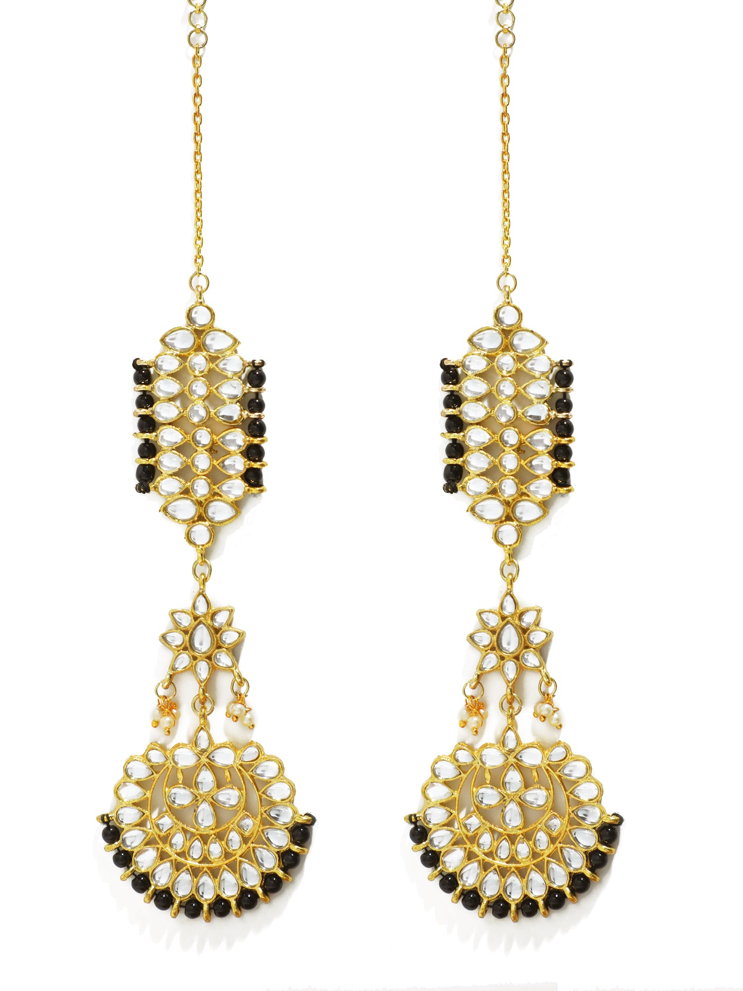 - Gold Tone Faux Kundan Black Kaanchain Earrings Set. This set of earrings can be best paired with Indian Attire. Made with Internationally approved skin friendly material