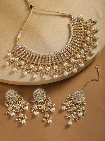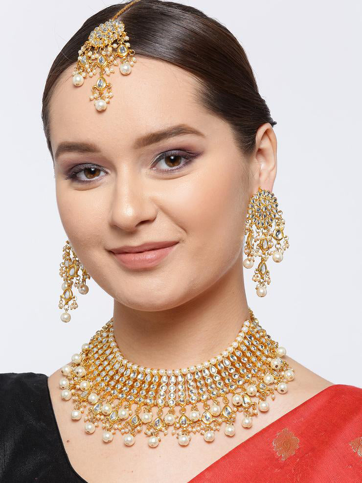 Kundan Choker Necklace Set with Pearl Tassels