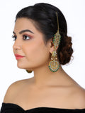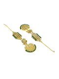 - Gold Tone Faux Kundan Dark Green Kaanchain Earrings Set. This set of earrings can be best paired with Indian Attire. Made with Internationally approved skin friendly material